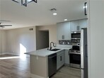 Enter this stunning Condo renovation to an open concept floor plan pouring in natural light. NEW Dove Grey Shaker cabinets contrasted by matte black handles. Modern Quartz countertops, stainless steel appliances and recessed LED can lights. Bathrooms have been remodeled top to bottom. Honed Carrara tile, accented shampoo boxes, new shower valves and trim kits. Warm luxury vinyl plank flooring that can withstand the family parties. Freshly painted inside including upgraded 5 baseboards. New light fixtures inside and out, kitchen & bath faucets, door handles, ceiling fans, chandeliers, toilets, light switches, everything you need to be able to simply move in and enjoy all this incredible home!"