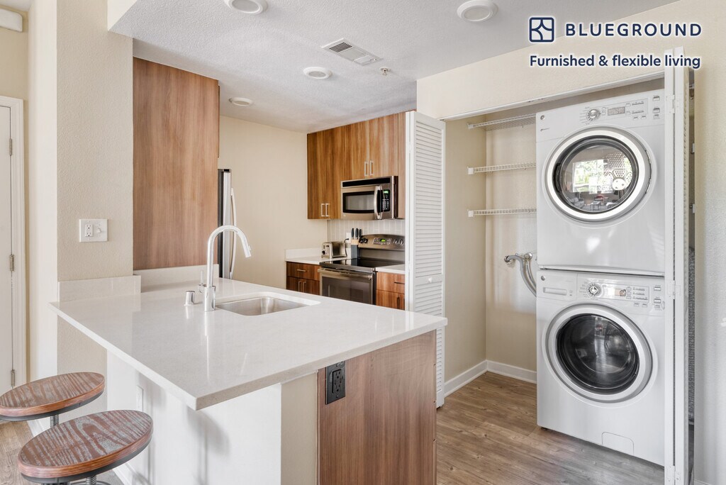 Feel at home wherever you choose to live with Blueground. You’ll love this stylish Contra Costa Centre furnished one bedroom apartment with its modern decor, fully equipped kitchen, and roomy living room. Ideally located, you’re close to all the best that Contra Costa Centre has to offer! (ID #SFO987) The advertised rate of $1,880/month is the lowest available price, based on a 2 month(s) and 7 day(s) stay with a move-in date of December 13, 2025. If you’re looking for a 1-year stay, the rate is $2,450/month. Rates vary depending on the duration of stay, season, and other parameters. For exact pricing and additional pricing components, please visit our website and enter your desired move-in and move-out dates. The rate is applicable when billed upfront; it can be higher if billed in multiple payments. Brokers are welcome to reach out. Were you looking for an unfurnished lease? Try Blueground instead and upgrade from unfurnished to furnished living: - Furnished at rates comparable to unfurnished - No setup or furniture costs - save thousands - Move-in ready - save time, just bring your suitcase Designed with you in mind As with any Blueground apartment, you’ll find a thoughtfully designed space complete with beautiful furniture and a fully equipped kitchen in this one bedroom property. And, thanks to our superior quality mattresses, luxury linens, and towels, you can relax knowing you’ll always feel comfortably at home. When you’re ready for some fun, you can take in the Contra Costa Centre vibes or bring the entertainment to you with the premium wireless speaker or smart TV. This apartment also offers in-apartment laundry. Sleeping arrangements King Bed, 70.8in/180cm Amenities Building amenities unique to this one bedroom apartment include an on-site: - BBQ Area - Dryer - Elevator - Swimming pool - Washing machine - Lounge - Parking - Pets allowed Arrival and ongoing support The entire apartment is yours to enjoy! Throughout your stay, you’ll have access to our Client Experience team through the Blueground App. You can schedule additional cleanings, submit maintenance requests, and view our neighborhood recommendations with just a few taps. We’ll share all details upon confirmation of your stay. Other things to note Building amenities may have an extra cost. This Blueground apartment has flexible lease options, allowing you to book it for one month, a year, or more. Pets are welcome, though weight limits and breed restrictions apply and may incur fees. Parking is offered based on availability and is subject to a fee. We take great pride in ensuring every photo displayed is shot in our own units with our actual furnishings. That said, we regularly refresh our decor and furniture arrangement, which may differ from what’s pictured. Also note - There are stairs leading up to the entrance of this apartment, but no elevator [SI]