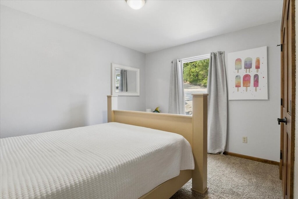 Available as a Mid-Term Rental ONLY! (3 to 6 months). Experience lakefront luxury living at its finest with this stunning 3 to 6-month rental opportunity. Nestled amidst breathtaking views, this spacious property offers 5 large bedrooms and 3 full bathrooms across over 2300 square feet of living space. The heart of this home is its open concept design, featuring high vaulted ceilings and a custom-built kitchen with exquisite cabinets, perfect for culinary enthusiasts and entertainers alike. The lakeside master bedroom boasts a private en-suite bathroom and convenient access to laundry facilities on the same level, ensuring comfort and convenience. Upstairs, an open loft provides additional versatile space, ideal for kids or guests to relax and stay entertained. Adding to its allure, a 40x40 second-tier shop awaits with concrete floors, 16-foot high ceilings, two large garage doors, and heating capabilities, offering ample room for hobbies, storage, or creative endeavors. Don't miss the chance to live in this serene lakeside retreat, where every day brings panoramic views and endless possibilities. Apply today and embrace the tranquility of lakeside living!
