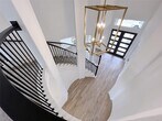 Curved staircase highlights two-story entry. Home office with French doors and formal dining room set at entry. Two-story family room with wall of windows and wood mantel fireplace opens to kitchen and morning area. Kitchen features walk-in pantry,double wall oven,5-burner gas cooktop and island with built-in seating space. First-floor primary suite with wall of windows. Dual vanities,garden tub,separate glass-enclosed shower and two walk-in closets in primary bath. First-floor guest suite offers private bath. A game room,media room and three secondary bedrooms are upstairs. Extended covered backyard patio and 7-zone sprinkler system. Three-car garage. MLS# 6034465