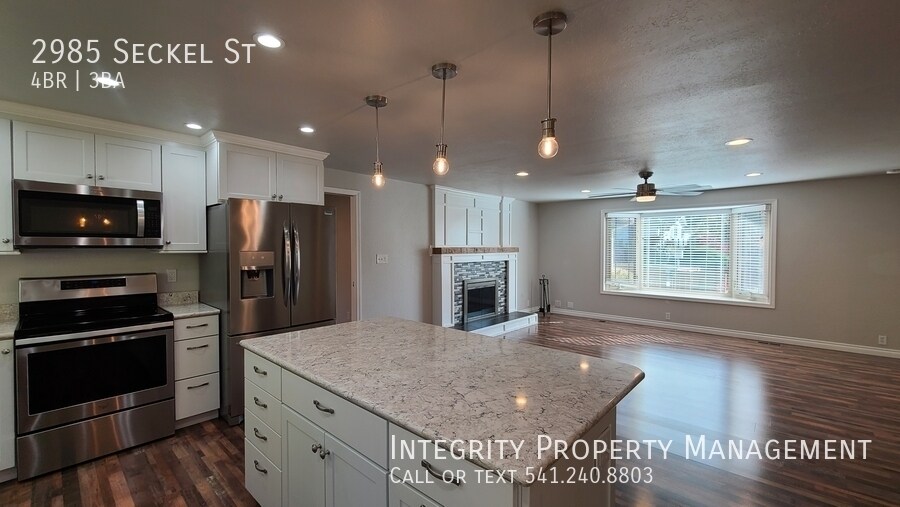 This beautifully updated 4-bedroom, 2.5-bath home offers modern comfort just blocks from Rogue Regional Medical Center. Step inside to an open-concept living area featuring rich wood-style LVP flooring, recessed lighting, and a stunning custom fireplace with a tile surround. The kitchen boasts spacious countertops, stainless steel appliances, and a large island perfect for entertaining. Each room is filled with natural light from the home's large windows and sliding glass doors, leading to a private, fully fenced backyard shaded by mature trees—ideal for relaxing or gatherings. With an attached garage, beautifully landscaped yard with lawn care maintenance included, and a quiet, well-kept neighborhood, this home combines convenience, charm, and style in a prime Medford location. Frequently Asked Questions: STATUS: Nov 1 PET RESTRICTIONS: 2 pets max, cats and small dogs only, less than 35lbs. Additional Security Deposit of $350 for 1 pet, $500 for 2 pets. SMOKING: No smoking, no vaping, no marijuana INCOME REQUIREMENT: Gross 3 times monthly rent CREDIT REQUIREMENT: At least 600. MOVE-IN COSTS: First Month, Security Deposit $3600 DEPOSIT TO HOLD: $500 upon approval, holds up to 7 days or until Nov 1 whichever is later. SHOWING INSTRUCTIONS: Schedule Online: APPLICATION INSTRUCTIONS (HOW TO APPLY): Apply online. All complete applications are processed as they are received. First approved applicant to submit $500 deposit gets unit. Go to If applying with a Pet or Assistance Animal, complete profile at HOUSING ASSISTANCE: Income must meet 3x the amount of tenant portion, plus utilities. More Information: • Property Description Details • AREA INFORMATION: South Medford, 3-4 blocks from RRMC FLOORING: LVP GARAGE/PARKING : 2 car garage plus driveway parking KITCHEN APPLIANCES INCLUDED: Fridge, microwave, oven/stove, dishwasher LAUNDRY APPLIANCES INCLUDED: Washer and Dryer Included HEATING/COOLING: Central Heat and Air PROPERTY TYPE: Single Family Dwelling UTILITIES INCLUDED: Trash. Tenant responsible for power, gas, sewer, water, city. YEAR BUILT: 1971 YARD: Spacious lawn, attractive hardscapes, landscape maintenance included. • Application, Lease Terms, and Fees • *ADDITIONAL FEES NOT INCLUDED IN RENT: APPLICATION FEE: $55 PET SCREENING FEE: $30 per pet RENTER'S INSURANCE: Required unless exempt by ORS 90.222 APPLICATION TURNAROUND TIME: 2-3 business days LEASE DURATION: 6 months, then month-to-month • HOA Instructions • None *All information is deemed reliable but not guaranteed and is subject to change.* All Integrity Property Management residents have the exciting opportunity to enroll in the Resident Benefits Package (RBP)! For just $39.95/month residents can enjoy exclusive benefits including HVAC Quarterly Filter Deliveries, comprehensive renter's insurance coverage, credit building to boost their credit score with timely rent payments, up to $1M in Identity Theft Protection, our top-notch resident rewards program, and much more! Residents can enhance their RBP by adding on-demand pest control for an additional $14/month.