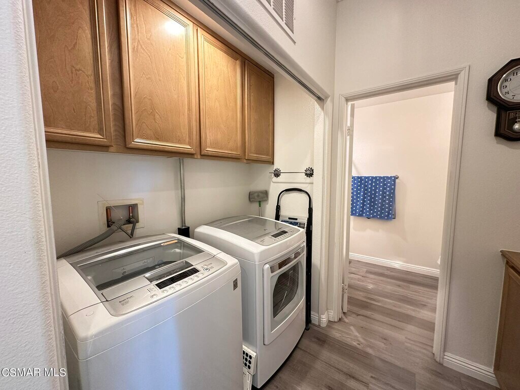 Welcome to this beautiful 2 bedroom, 2 bathroom end-unit condo located in the desirable Paseo Del Sol gated community in Simi Valley. This light-filled home features all living areas upstairs, providing privacy and a spacious, open layout.The home showcases beautiful wood flooring and an updated kitchen with ample cabinetry and functional workspace. The comfortable living area opens to two private balconies, perfect for relaxing or enjoying fresh air.The primary suite features a walk-in closet and a spacious bathroom with a soaking tub and separate walk-in shower. The second bedroom and bathroom offer flexibility for guests, a home office, or additional living space.Additional highlights include an attached two-car garage, private end-unit location, and the added security of a gated community. Residents enjoy access to community amenities including a pool, spa, playgrounds, and ample guest parking.Ideally located with Vons, dining, and shopping just outside the complex, this home offers comfort, convenience, and a great Simi Valley location.