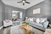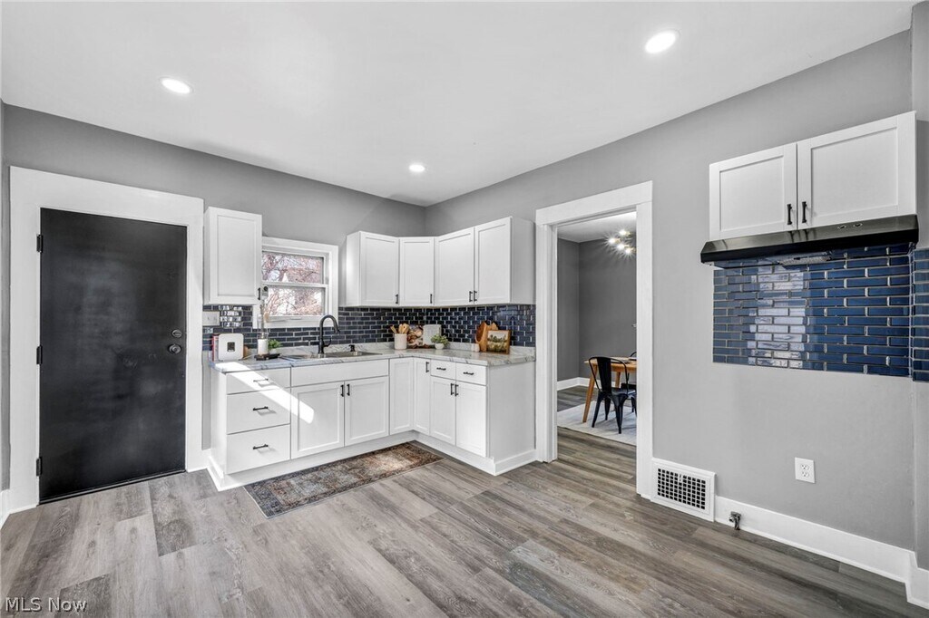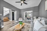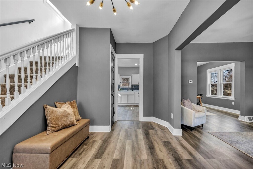 $1,300/month rent - $1,000 security deposit due prior to move-in. Beautifully updated single-family home featuring fresh interior finishes,new flooring,and modern lighting throughout. Enjoy a large covered front porch,spacious living and dining areas,and an updated kitchen with plenty of cabinet and counter space. The second floor offers two bedrooms,a full bathroom,and an additional flexible area perfect for a home office or rec room. The home also includes a large full basement providing plenty of storage space. Conveniently located with quick access to major commuter routes,approximately 5 minutes to the Opportunity Corridor,about 10 minutes to Cleveland Clinic main campus,and around 10–12 minutes to Downtown Cleveland. Tenant pays all utilities. No pets allowed.