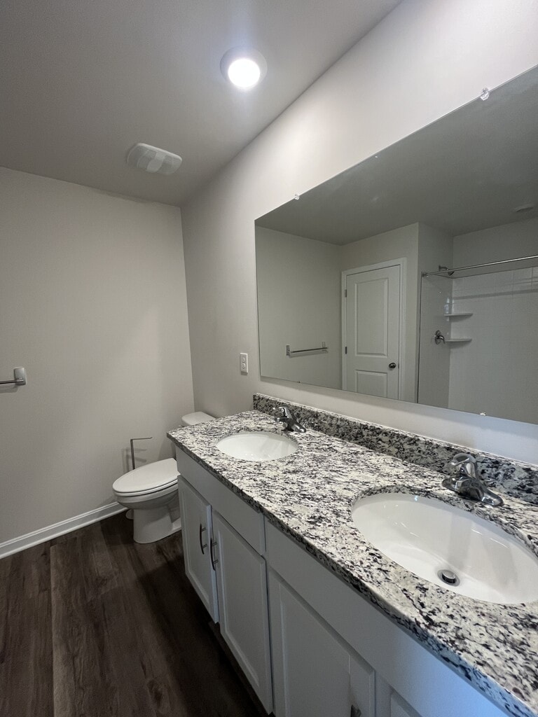 This beautiful, like-new, two-story Colonial-style home offers spacious living and modern conveniences. The first floor features a large living room, a half bath, and a dining area seamlessly connected to the kitchen—perfect for entertaining and family gatherings. Upstairs, you'll find four generously-sized bedrooms, including a large master suite (huge closet) with an ensuite bathroom for added privacy and comfort. A second full bathroom caters to the other bedrooms and guests. The second floor also features laundry room and utility closet. The front loading attached garage provides easy access to the home, and the nicely landscaped lot offers a flat backyard.