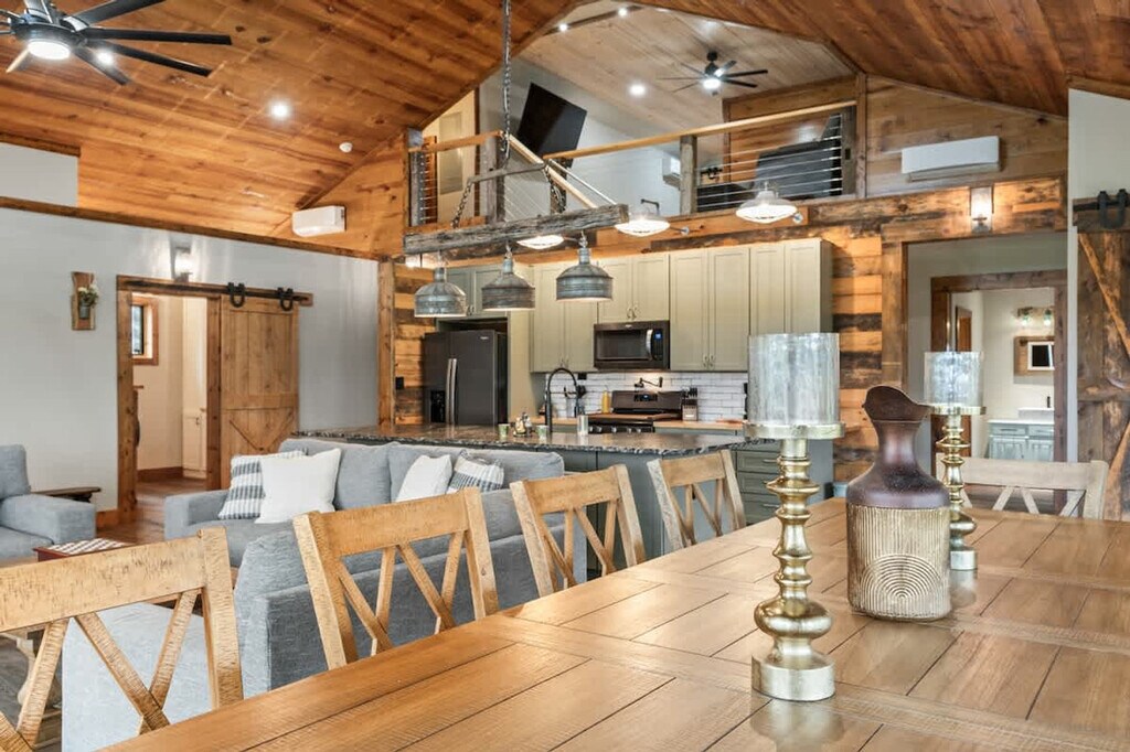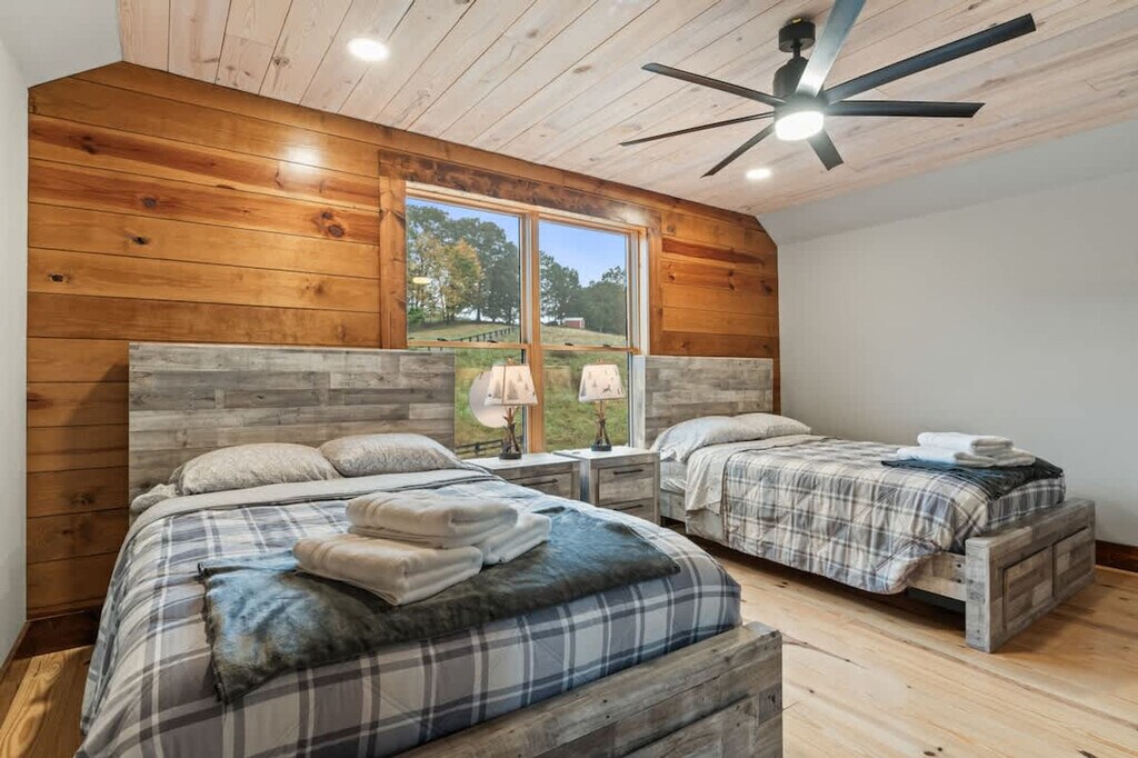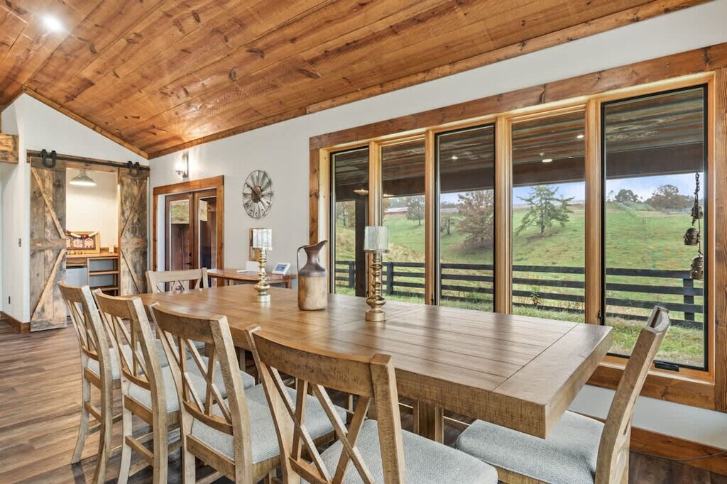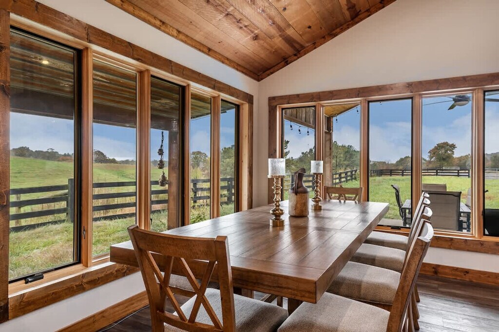 Feel at home in Swasa Farm, a peaceful 10-acre countryside escape surrounded by Ellijay’s rolling hills. This cozy retreat offers rustic open-concept living and a warm, memorable stay. Swansa Farm features an open-concept layout that blends rustic farmhouse charm with modern comfort. The main living area includes a beautifully updated kitchen with ample counter space and a seamless flow into a large dining area, where guests can enjoy meals with serene views of the surrounding hills. Rustic farm-style sliding doors add warmth and character throughout the home, leading to cozy and thoughtfully designed spaces. Upstairs, an inviting entertainment room creates the perfect setting for movie nights and games. Outdoors, the property offers a large, well-kept stable and an expansive riding arena. The authentic farm setting is complemented by peaceful cattle grazing next door. Relax in the hillside jacuzzi overlooking the rolling hills and watch breathtaking sunset views. Pets are allowed with prior approval and a pet fee is required. Swansa Farm is tucked into the peaceful countryside of Ellijay, Georgia, known for its rolling hills, wide-open views, and warm southern hospitality. Just minutes away, you’ll find Ellijay’s charming downtown filled with cozy cafés, local restaurants, boutique shops, and classic southern markets. The region is also famous for its apple orchards, scenic drives, and outdoor adventures. Nature lovers can enjoy hiking trails, riverside walks, fishing spots, and mountain overlooks throughout the North Georgia mountains. The area offers something special year-round, whether you’re exploring nearby wineries, visiting local farms, or enjoying seasonal festivals. Quiet time begins at 10 PM, as required by county ordinance. Please be mindful of noise outdoors and in the jacuzzi during these hours to respect the peaceful rural environment. No unregistered guests are allowed on the property without notifying us in advance. No parties or events are allowed without prior approval, and unauthorized gatherings will result in immediate cancellation of the stay. Please do not enter gated neighboring farmland. Farm equipment, stables, and the riding arena are for viewing and photos only, no animal use or riding is permitted. Keep all gates closed to maintain the safety of the property and surrounding animals. Outdoor smoking is allowed only in designated areas, and cigarette butts must be disposed of properly. Please shower before entering the jacuzzi and keep all glass away from the area. The jacuzzi must be closed after use to keep it clean and functioning properly. Please clean up spills promptly and treat the home with care; excessive mess or damage may result in additional cleaning fees. [SI]