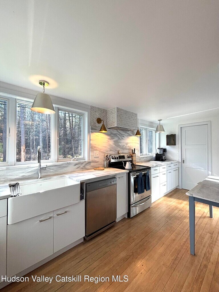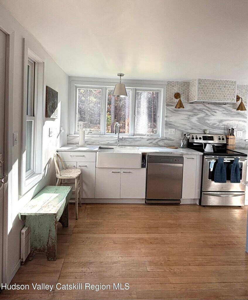 Luxury 2-Bed,2-Bath Spa Retreat on over 6 Acres - Jet Tub,Sauna,Fire Pit & Handcrafted Natural Design Just 10 minutes from the heart of Woodstock and 5 minutes from the Bearsville Theater and restaurants,this stunning 2-bedroom,2-bath retreat combines luxury,craftsmanship,and nature in perfect harmony. Every detail has been thoughtfully designed using only natural materials - stone,wood,and tile to create a space that feels warm,grounded,and timeless. Soft alabaster sconces illuminate the interiors,while a cozy wood-burning fireplace with a hand-crafted European tile surround anchors the living room with elegance and charm. Indulge in spa-style relaxation with a jet tub and private sauna,then unwind outdoors by the fire pit as you take in the peaceful beauty of your 6-acre sanctuary. A rare opportunity to experience total serenity and high-end comfort just minutes from Woodstock's vibrant shops,music,and dining.