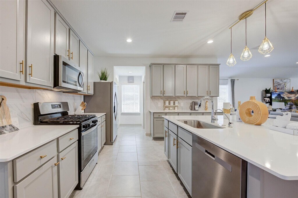 Welcome to this beautifully maintained SMART home located in the desirable master-planned community of Tamarron in Katy. This single-story gem features 4 spacious bedrooms and 2 full bathrooms,designed with an open-concept layout perfect for modern living. The expansive living and dining area seamlessly connects to a well-appointed kitchen complete with a large island,generous cabinet storage,and ample countertop space—ideal for both everyday living and entertaining. Refrigerator,washer,and dryer are included. Enjoy peace of mind with a built-in security system,video doorbell,keyless entry,and a programmable sprinkler system. The home showcases a contemporary brick veneer exterior and a sizable backyard with a covered patio—perfect for relaxing or hosting gatherings. As part of the vibrant Tamarron community,you'll have access to resort-style amenities including pools,splash pads,playgrounds,a fitness center,parks,scenic walking trails,and more. MLS# 57916679