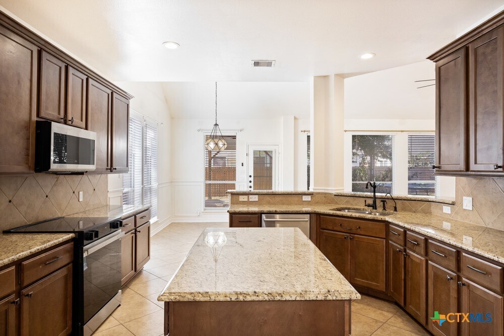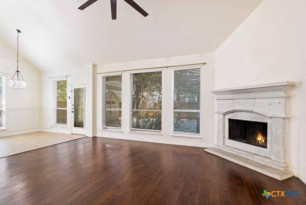 Experience resort-style living in this exceptional Perry-built home,perfectly situated in the prestigious Mill Creek Crossing community of Seguin. The centerpiece of this property is a private backyard oasis featuring a sparkling in-ground pool with a natural stone waterfall,surrounded by an expansive covered patio accented with dual ceiling fans-ideal for entertaining or unwinding beneath the Texas sunset. Inside,sophistication meets comfort with over 3,500 square feet of beautifully designed living space,including rich hardwood floors,elegant wainscoting,and soaring ceilings that create an atmosphere of refined openness. The gourmet kitchen is fully equipped with granite countertops,a large island,stainless steel appliances,and a refrigerator,washer,and dryer-all included for a seamless move-in experience. A dedicated study with striking built-ins and the luxurious primary suite offer both function and indulgence,featuring a spa-inspired bath with a freestanding soaking tub and frameless glass shower. With four spacious bedrooms,three and a half baths,and a three-car garage,this home combines timeless craftsmanship with modern convenience in the coveted Navarro ISD-just moments from New Braunfels and all the charm of Hill Country living.