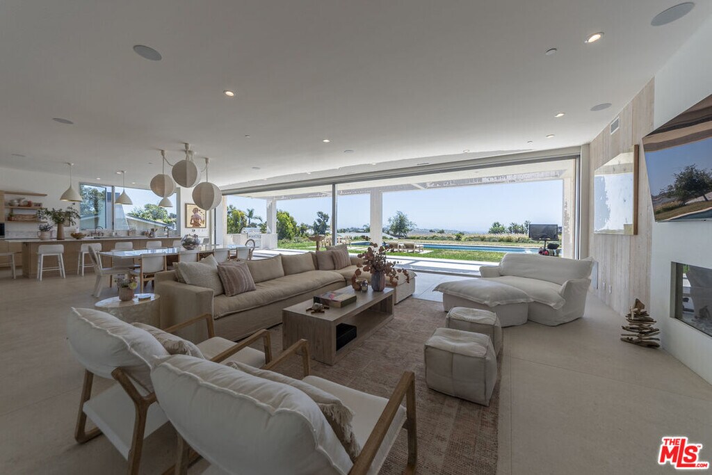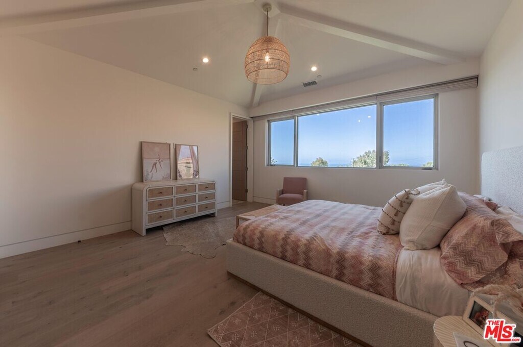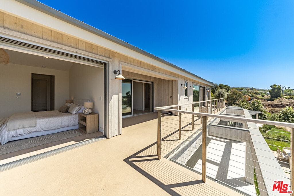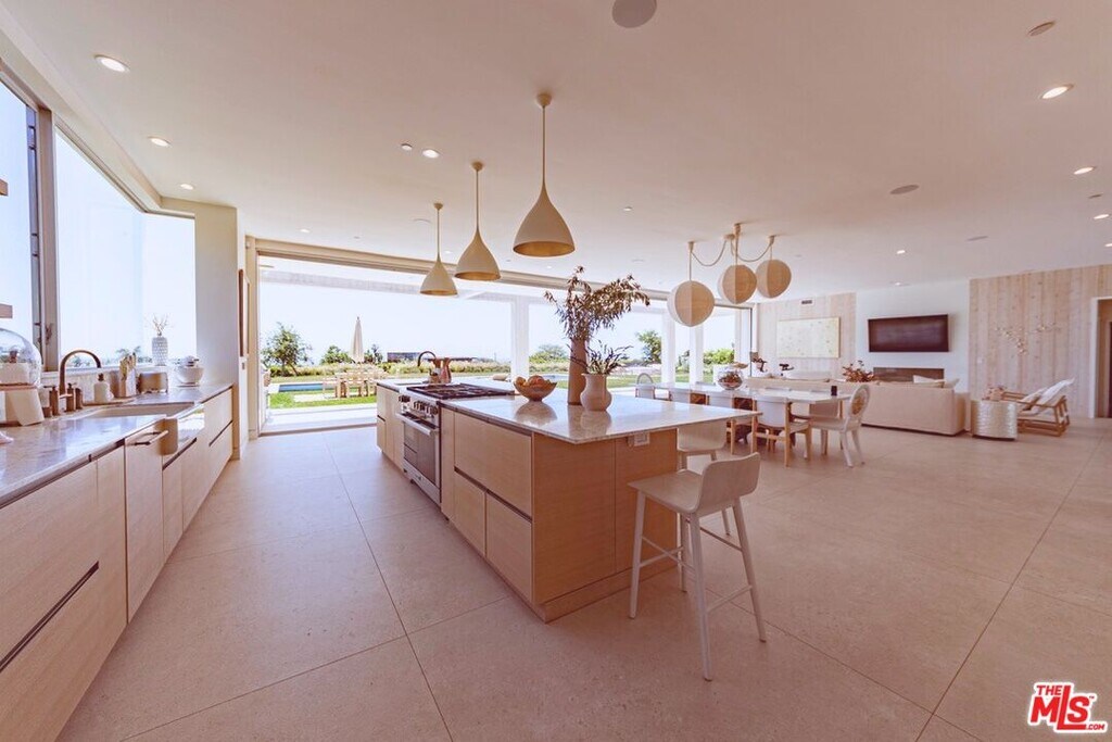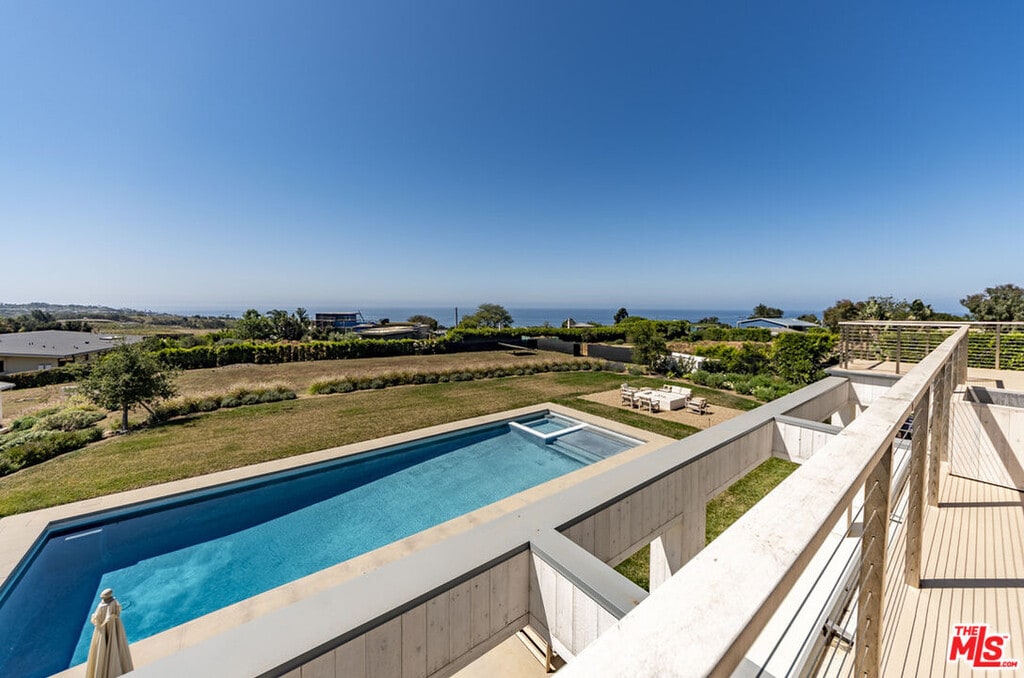 New Construction Completed in 2022. This stunning rustic-modern farmhouse, designed by renowned Doug Burge Architects, is perched above Zuma Beach in Malibu Park with breathtaking panoramic views of the Pacific Ocean. Enter through custom double gates and follow the exquisitely landscaped driveway to a spacious motor court with parking for up to six cars. A dramatic glass pivot door opens to a soaring, light-filled interior where porcelain floors and cedar walls create a serene, sophisticated ambiance. The open-concept living area is lined with pocket doors that span the entire length of the downstairs, seamlessly blending indoor and outdoor living and framing gorgeous ocean vistas. The entertainer's kitchen features terrazzo countertops and state-of-the-art Miele appliances, including three ovens and a 36-inch refrigerator and freezer.Outdoors, enjoy a 20 x 50 pool and spa, an expansive grassy area ideal for a volleyball court or lawn games, a beautiful fire pit for evening gatherings, and a fully equipped outdoor kitchen with Viking barbecue. The main house offers five generous en-suite bedrooms, including a spectacular primary suite with dual walk-in closets and a spa-inspired bathroom featuring ocean views from both the soaking tub and the luxurious shower. A well-appointed media room with a Sony projector, 104-inch screen, and two-tier seating completes the entertainment experience.With its own private gated driveway, the spacious guest house includes a full kitchen, double-sink bathroom, and a large bedroom with walk-in closet perfect for family and friends or use as a pool house. This is California coastal living at its finest. It is serene, stylish, and just minutes from Malibu's best beaches, restaurants, and shops. 13-month minimum term - no exceptions. MLS# 25590443