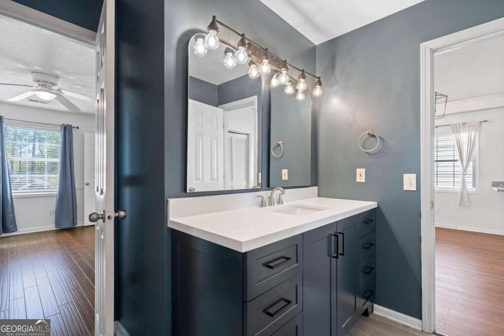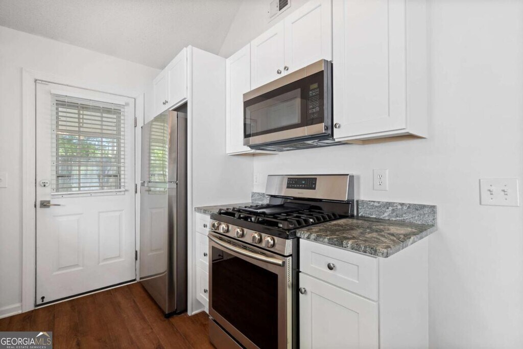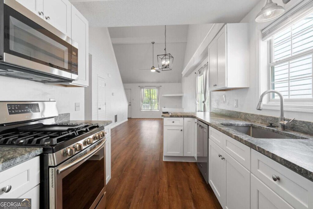 Rent includes washer/dryer, pest control, trash and neighborhood pool access. Walk to downtown Kennesaw or Swift Cantrell Park in this newly renovated home with brand new HVAC, water heater, and roof for maximal energy savings. This gorgeous open concept 3 bed/2 bath home has been thoughtfully designed with beautiful leathered granite countertops in the kitchen, stainless steel Samsung appliances and sleek modern cabinets. The bathrooms have been reimagined with stunning white quartz countertops, trendy blue vanities and all new plumbing. Great floor plan for roommates! You cannot beat this location being .9 miles from downtown Kennesaw, .7 miles from Swift Cantrell Park, 7 minutes to KSU, 13 minutes to Kennestone Hospital and close to every store and restaurant you could ever need! Outside you'll find a lovely patio for entertaining with a spacious fenced in backyard, complete with large storage shed, garden, magnolia tree and fruiting peach tree! Pets accepted on a case by case basis with $450 deposit per pet- please call. Call for application instructions. Credit and background check required. Make this beautiful home yours while the peaches are fresh!