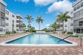 Spacious 55+ condo with serene pool and garden views from the screened balcony! Flexible layout—living room can be enclosed as a second bedroom with its own full bath or kept open for a larger living space. Unit is conveniently located across from the laundry facility and steps from the elevator. Offered fully furnished and move-in ready. This one won’t last—schedule your showing today!