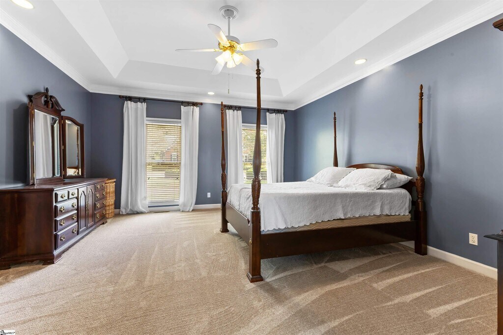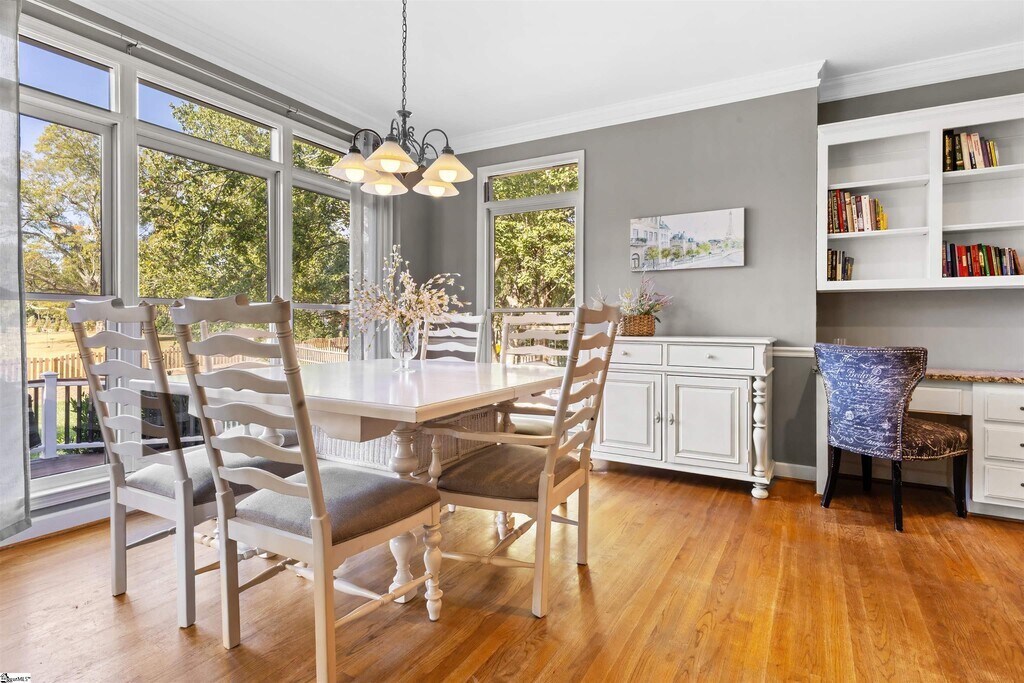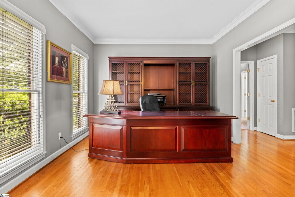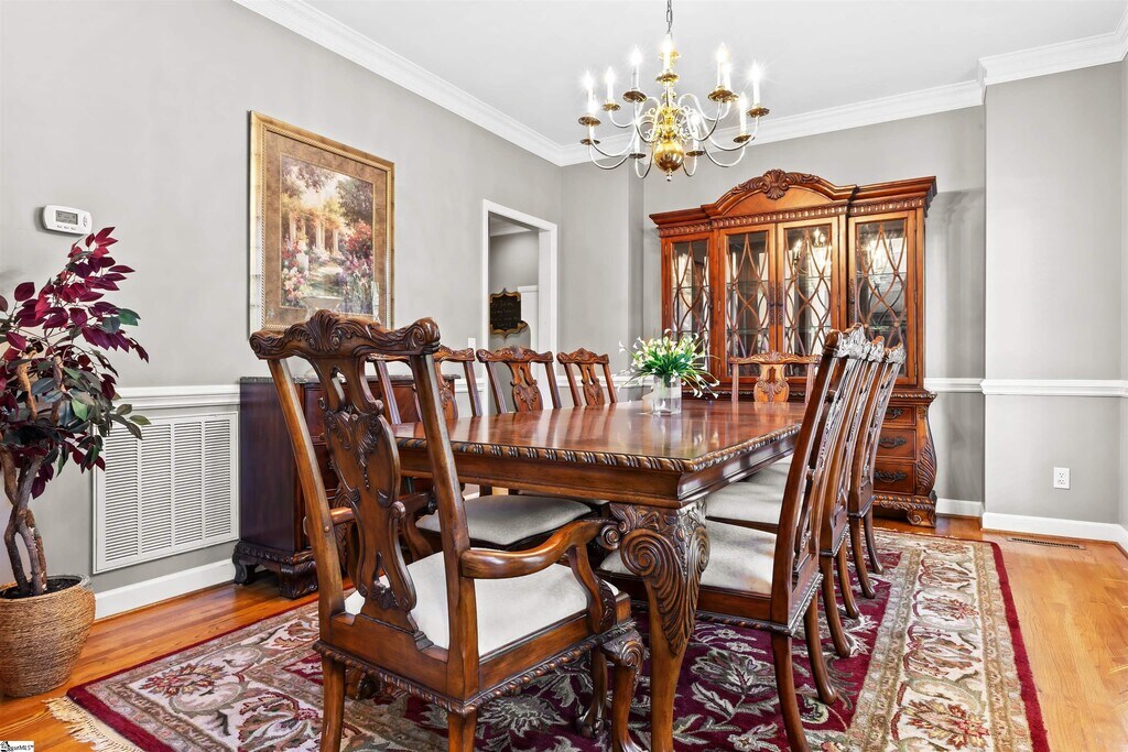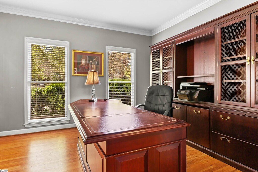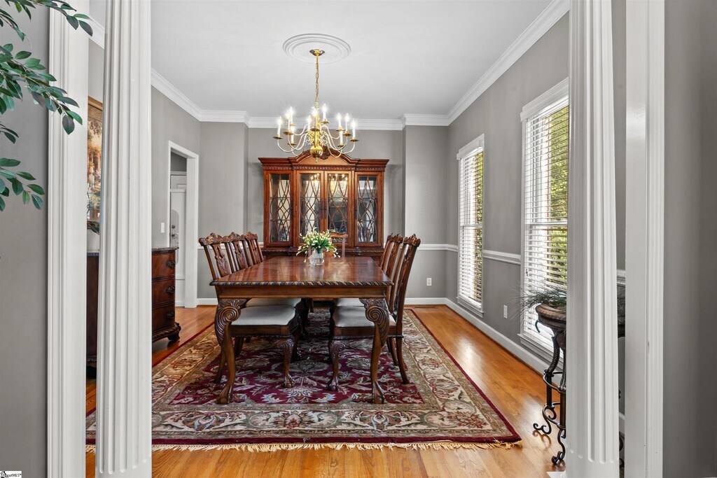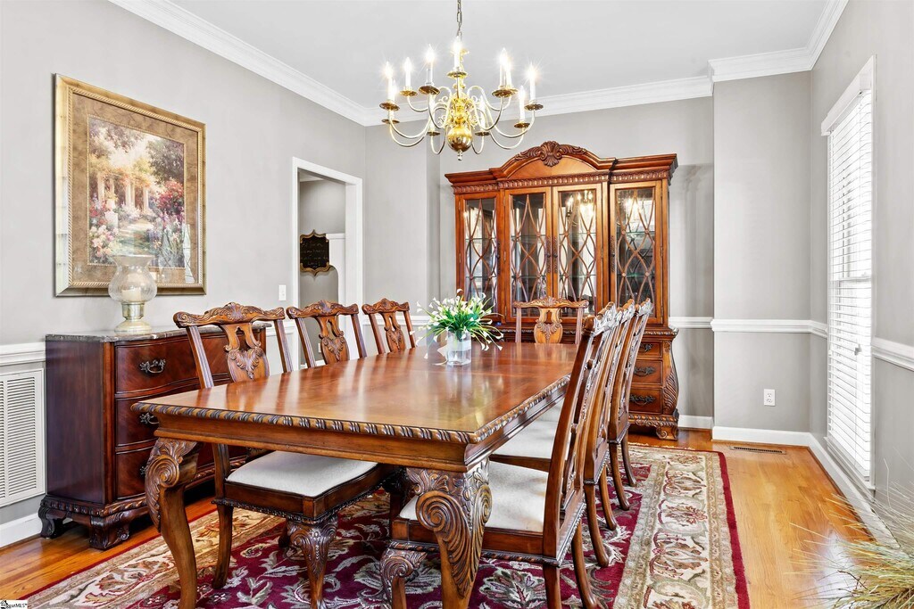 This is a rare opportunity to lease in Spaulding Farm, one of the Five Forks area's most beloved neighborhoods fantastic amenities including a pool, tennis courts, fitness center, clubhouse, and walking trails, along with neighborhood events for all ages. With its close proximity to GSP airport, downtown Greenville, grocery stores, coffee shops, etc. this location cannot be beat. It is so close to Oakview Elementary School that many families choose to walk and take advantage of the designated crossing guard! This stately brick home features a primary suite on the main level with a gorgeous newly completed shower and spacious walk-in closet. The living room with a gas fireplace flows into an open office area and the kitchen. The dine-in kitchen is surrounded by windows overlooking the backyard. A formal dining room and laundry room complete the first floor. Upstairs includes a large bonus room currently used as a theater room, plus three bedrooms- one with an ensuite vanity area and two sharing a Jack-and-Jill bath. Multiple flex and storage spaces provide options for play, work, or additional closets. All carpets are brand new and the home has been repainted recently. Outdoor living shines with a screened porch for quiet mornings, a spacious deck for entertaining, and a backyard with a playground. With nearly an acre of usable space, there is room to garden, play, and unwind, all within one of Greenville's most desirable communities. Rental Information: -two year lease ideal, one year lease acceptable -all applicants much complete application -rental insurance required -all utilities not included in rental price -lawn maintenance included -house is being listed furnished; if unfurnished is desirable, please reach out to list agent to discuss -$5,750 security deposit and first month's rent due upon execution of contract