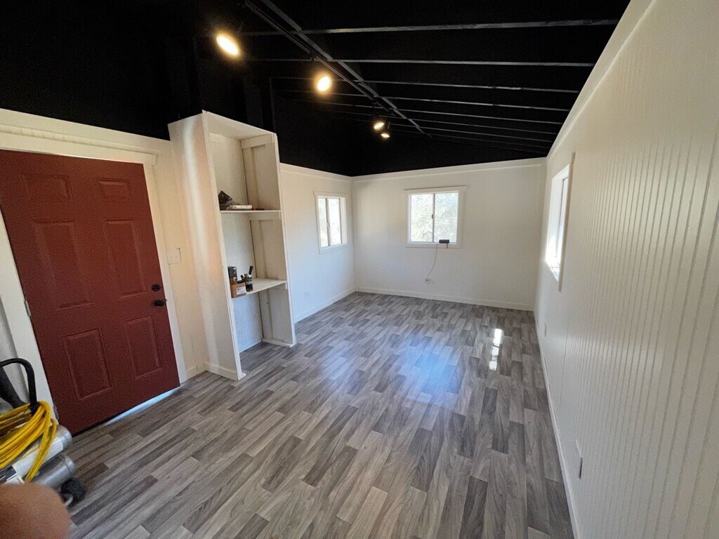 If you are looking for a unique, quiet, country opportunity this very special one bedroom one bath A frame country cabin style home is waiting! In beautiful Oak trail estates amongst a gate, you will find a beautiful piece of property surrounded by nature, oak trees, and mountain views. Kitchen is open to living area with wood burning stove and offers a farmhouse sink, plenty of cabinet space, a two-burner top, convection bake oven and refrigerator. Recent remodel offers laminate wood floors, vaulted ceilings, and special touches throughout. Inside laundry with stackable washer/dryer and extra space for storage, office or.. Also included is a detached finished room offering extra space perfect for many uses. Enjoy a huge deck perfect for morning coffee, entertaining and much more! Heat and AC. Owner pays for water. Must provide your own star link for internet. Pets ok. Avail now.