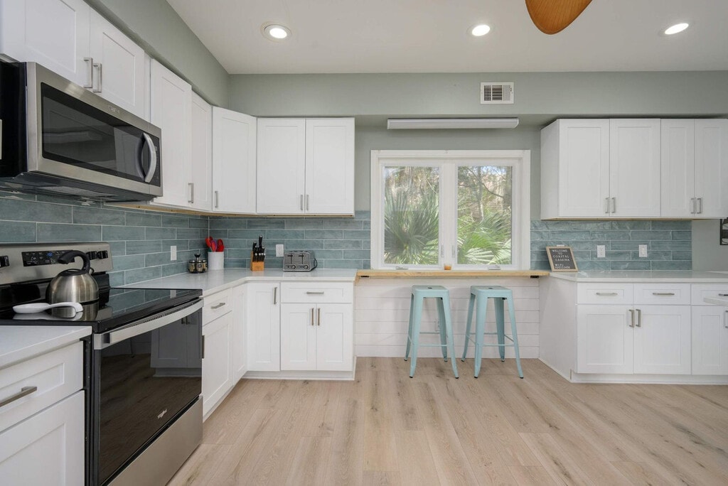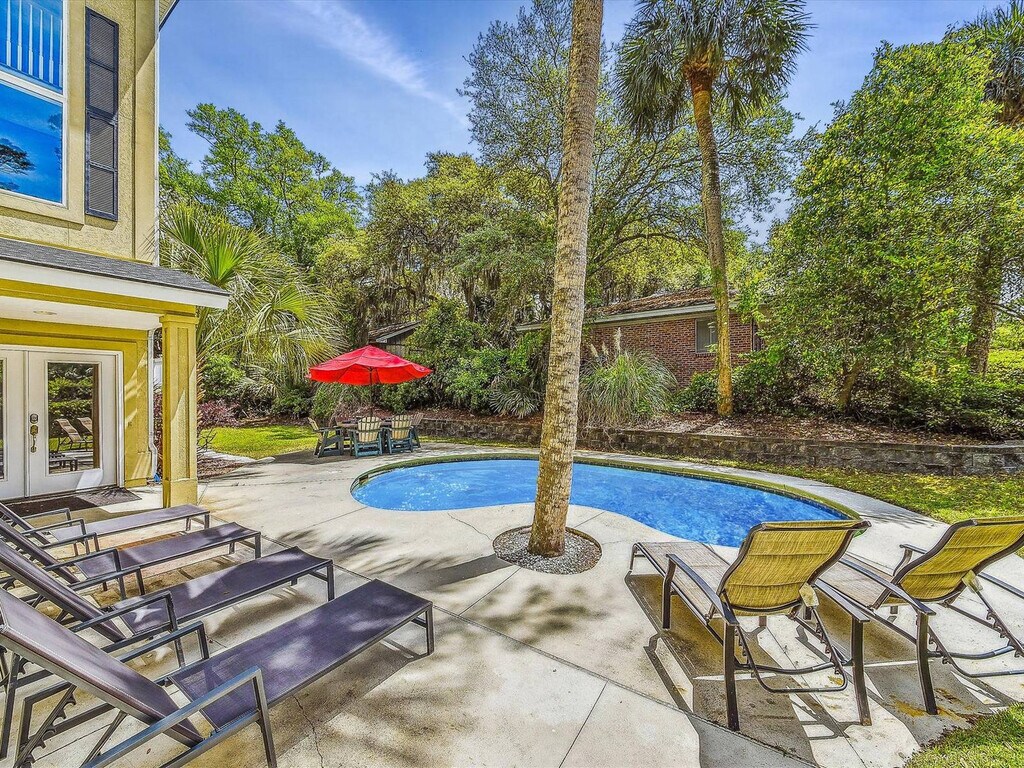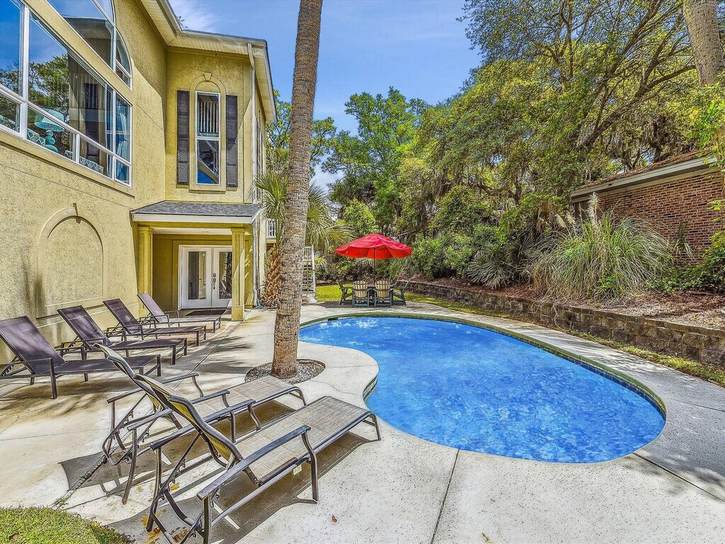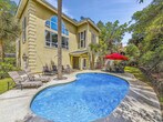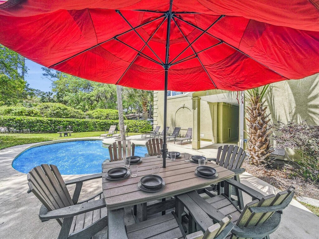 Feel at home in this 6-bedroom, 4-bath Hilton Head retreat, located just 120 yards from the beach. This spacious home offers over 3,000 sq. ft. of living space in a prime location. This beautifully furnished home features a dramatic 2-story great room, an elegant dining area for 10+, and a remodeled kitchen. TVs are included in every room. A private downstairs suite with its own kitchenette and entrance is perfect for extended family or guests seeking extra privacy. Enjoy a private pool and a balcony dining area with a Weber grill. Pool heat is available for an additional fee and must be requested at least two weeks prior to arrival. The pool heater is electric and may not operate when outdoor temperatures fall below 55°F. This apartment is pet-friendly with a fee. Located in one of Hilton Head’s most desirable beach communities, this apartment is steps from the sand and close to the island’s best dining, shopping, and outdoor activities. Walk or bike to Coligny Plaza for oceanfront restaurants, cafés, and live entertainment. The quiet, tree-lined street offers a peaceful coastal setting with easy access to bike paths and the island’s natural beauty. Guests are asked to clean the grill after use and to respect quiet hours to ensure a peaceful stay for everyone in the neighborhood. [SI]