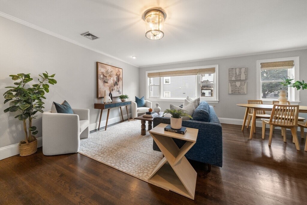 This fully renovated three-story residence offers the perfect blend of city convenience and modern comfort. It features 3 bedrooms,2 full bathrooms,and 2 private outdoor spaces. The main living level boasts an open-concept layout flooded with natural light,connecting the kitchen,dining,and living areas. The chef’s kitchen includes stainless steel appliances,quartz countertops,and a Carrara marble herringbone backsplash. The top floor is dedicated to a primary suite,complete with a walk-in closet,full bathroom,and private roof deck offering city views. The second level includes 2 spacious bedrooms,a full bathroom,and a cozy nook ideal for a home office/reading area. Located just 2 blocks from the highly anticipated Washington Village development,this home offers both comfort and investment potential in one of Southie's most desirable neighborhoods. MLS# 73436831