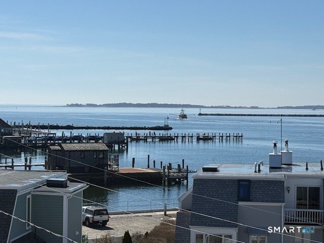 Call for Availability - This is an unusual apartment in heart of the Borough with superb water views of the harbor, over Fishers island sound . It has roof top views of the village and beyond from the bedrooms, dining room and upstairs room and deck. Living Room is up a flight of stairs with two bedrooms and a full bath. Next flight has diningroom, office or pantry, kitchen. Top floor has half bath, room for a small bed and access to large deck with amazing views. MLS# 24159330