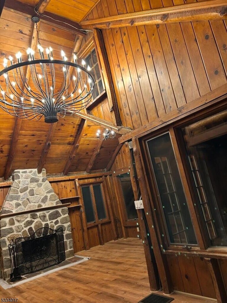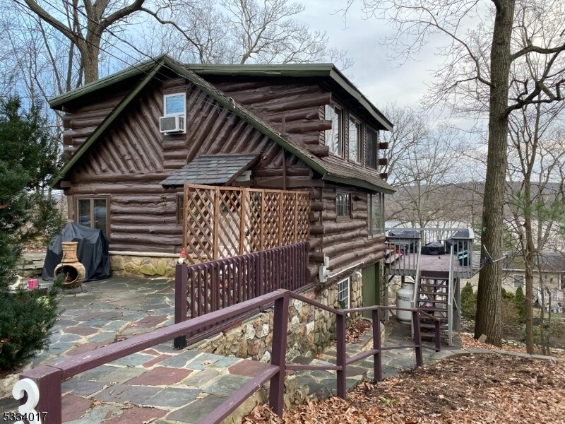 Lakeside community! TWO bedroom, large Master bedroom loft with a double closet, second bedroom with new floor and closet also, new kitchen countertop, sink, floor and newer oven and refrigerator, bathroom was updated 5 years ago and living room has some new windows, fireplace is two story high. NEW floors in the living room and the dining room, vaulted ceilings, New lighting, Bright with lots of windows, slate patio & large deck for entertaining during the warmer months, winter views of Greenwood lake are breathtaking. Basement for laundry and storage. Circle driveway also.