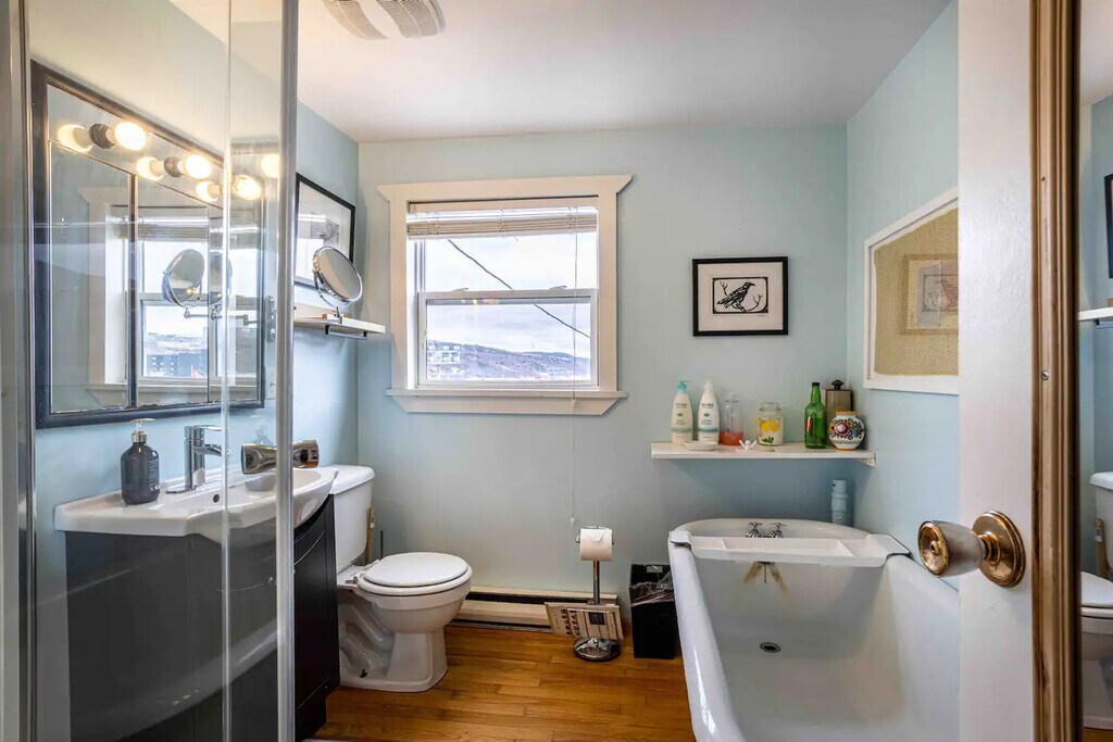 The advertised rate of C$3,023/month is the lowest available price, based on a 30 day(s) stay with a move-in date of March 18, 2026. Rates vary depending on the duration of stay, season, and other parameters. For exact pricing and additional pricing components, please visit our website and enter your desired move-in and move-out dates. The rate is applicable when billed upfront; it can be higher if billed in multiple payments. Feel at home in this city cottage, professionally managed and located in the Battery, one of the most photographed areas of St. John’s, next to all the attractions of downtown. Enjoy excellent views of St. John's Harbour. This apartment features an open-concept main level with hardwood floors, a fully equipped kitchen, and a wood fire stove. A spiral staircase leads to the second level, where you'll find the main bedroom with a queen-size bed and views of the harbour, a second bedroom with an additional queen-size bed and writing desk, and a four-piece main bath with a cast iron soaker tub and stand-up shower. The basement houses the laundry room with ample storage. Fast Wi-Fi is available. This apartment is pet-friendly with a cleaning fee. The Battery sits on the entrance to the harbour, on the slopes of Signal Hill. It is sometimes described as an outport within the city of St. John's and is noted for its steep slopes and colorful houses. The apartment is located at the foot of Signal Hill, offering access to world-class hiking. Walk to restaurants and nightlife. Please only flush toilet paper down the toilet, as the plumbing is sensitive. The hatch door to access the laundry in the basement is a little heavy, and the stairs are narrow, so please use carefully. As you open the hatch door, please also be mindful of the painting on the wall. Fresh linens and towels, toiletries, condiments, coffee, tea, and basic essentials are provided upon arrival. There is an indoor fireplace, but firewood is not supplied; please remember to bring your own. Registration Number: 5365 [SI]