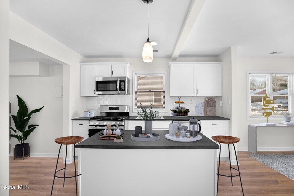 Move-in ready & available FOR RENT immediately! Welcome to 3 Miracle Lane in Loudonville! This two-bedroom,one-bath home offers a spacious open-concept living area,featuring a large living room and a working kitchen with an island,and extra space off the kitchen perfect for a home office,dining area,or additional living space. The kitchen features beautiful cabinets and a gas range,providing a functional space for cooking and entertaining. LVP flooring throughout and recessed lighting create a bright and modern feel. The fully fenced backyard includes a shed and is ideal for outdoor activities or entertaining. Ideally located near the Crossings of Colonie,with easy access to highways,the airport,shopping,and dining. Move-in ready and in one of Loudonville's most sought-after areas,within the desirable South Colonie School District and Shaker El. Landlord requires minimum 1 year lease,RentSpree application,credit report,verification of employment & verification of (12) months rental payments from prior landlord. Tenant pays gas,electric,internet,utilities,trash,lawn & snow. No pets. No smoking. Some photos have been virtually staged. Agent is co-owner. This property is listed for sale and for rent. MLS ID 202611861