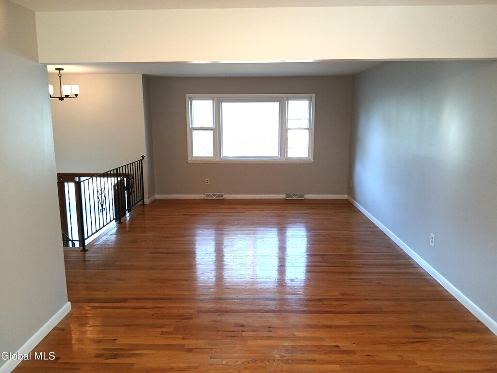 Raised ranch .Nice sized rooms,laminate on 1st floor,gleeming harwood on 2nd floor. Large family room with wood burning brickfireplace,central air and gas heat,2 car garage. Nice sized yard. New vanities in baths and kitchen with new cabinets,black/stainless appliances and pantry . A pet will be considered on a case by case basis. Broker is owner