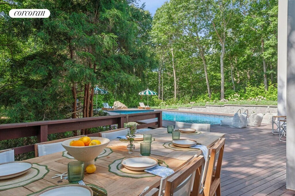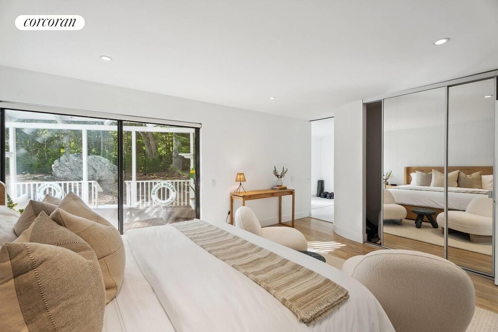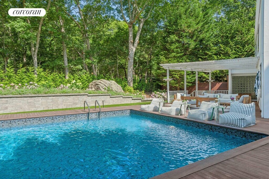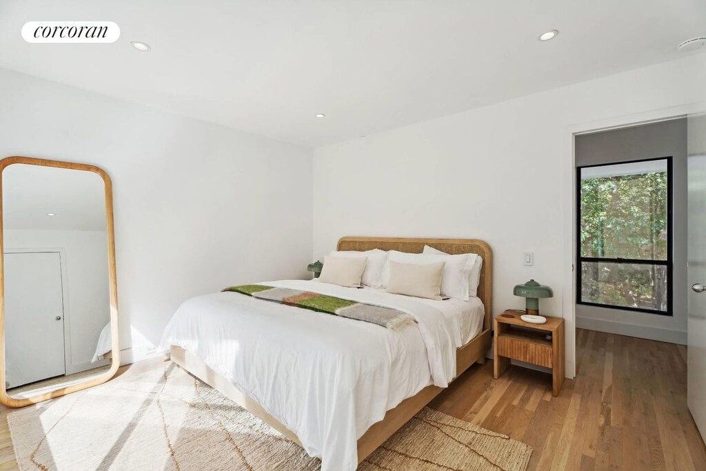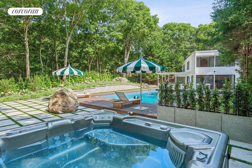 Enjoy summer at this light-filled, oasis just minutes from Sammy's beach with a tremendous backyard featuring a brand new Sauna and hot tub encapsulated by beautiful landscape design!. Upon entering the home there are double-height ceilings that encompass the living and dining area, which flow into the spacious kitchen. Additionally, on the first floor, there is a powder room and an en-suite primary bedroom with access to the backyard. Via sliding glass doors from the main living area, immerse in the sylvan, private backyard which boasts an inground swimming pool and ample space for dining, sunbathing, and entertaining. On the second level, there are three spacious bedrooms and one full bathroom. All four bedrooms have King Sized Beds! [[Rental Registration # RR-25-1125]]