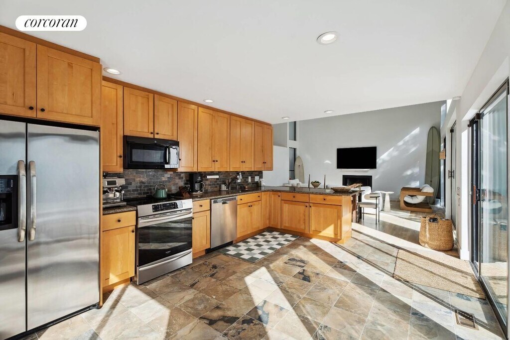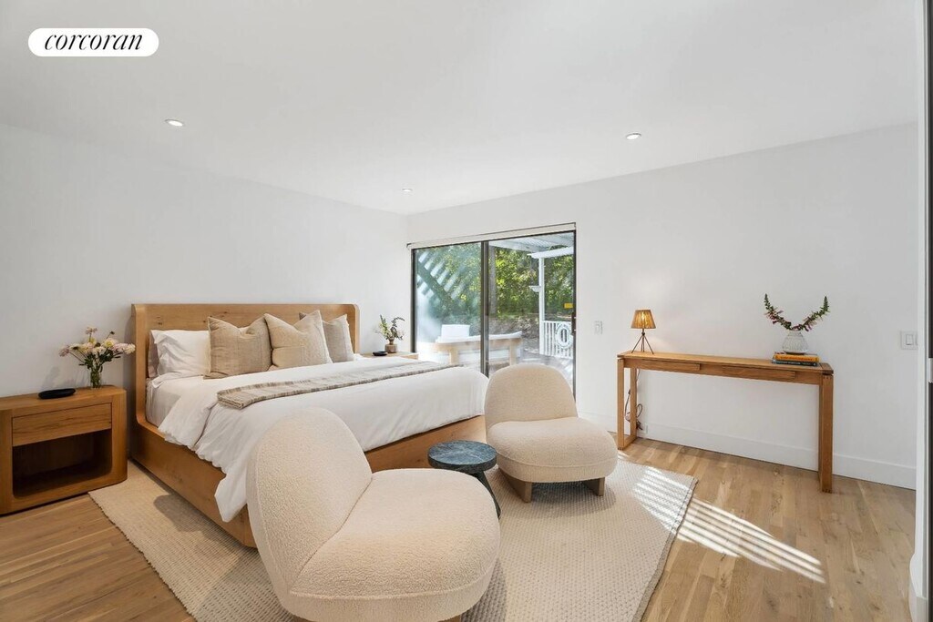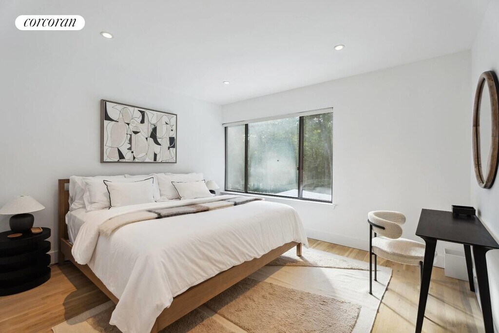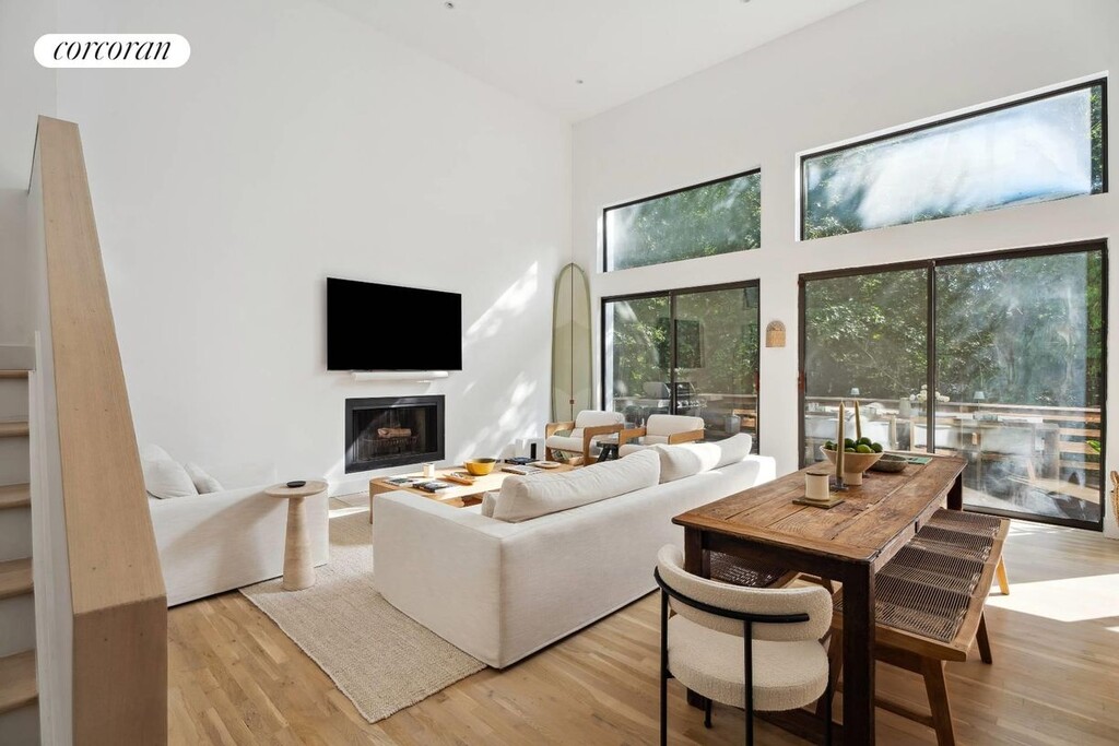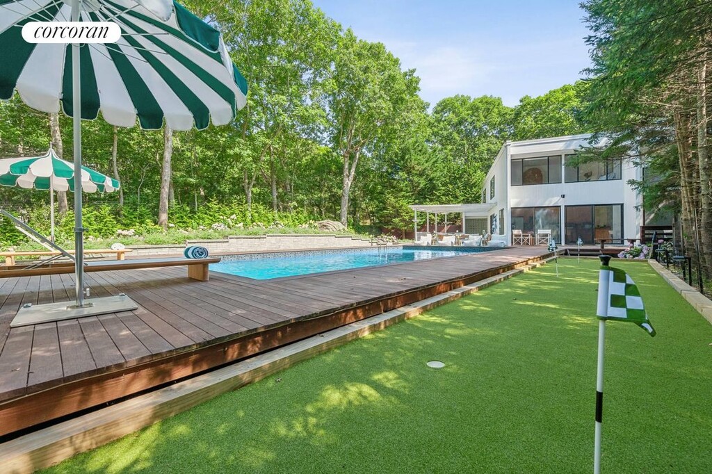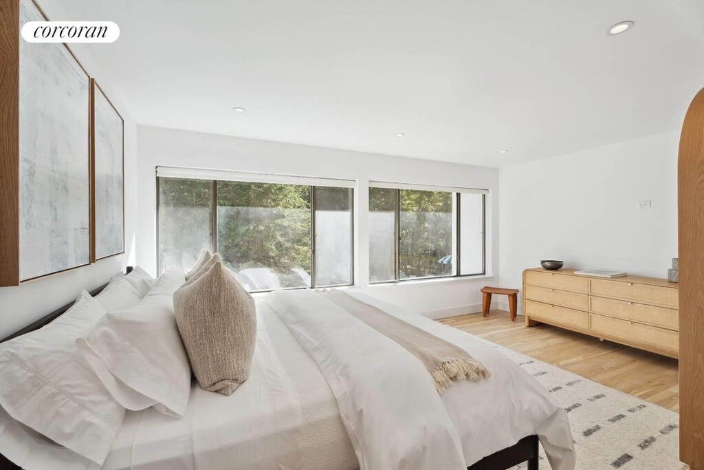 Enjoy summer at this light-filled, oasis just minutes from Sammy's beach with a tremendous backyard featuring a brand new Sauna and hot tub encapsulated by beautiful landscape design!. Upon entering the home there are double-height ceilings that encompass the living and dining area, which flow into the spacious kitchen. Additionally, on the first floor, there is a powder room and an en-suite primary bedroom with access to the backyard. Via sliding glass doors from the main living area, immerse in the sylvan, private backyard which boasts an inground swimming pool and ample space for dining, sunbathing, and entertaining. On the second level, there are three spacious bedrooms and one full bathroom. All four bedrooms have King Sized Beds! [[Rental Registration # RR-25-1125]]