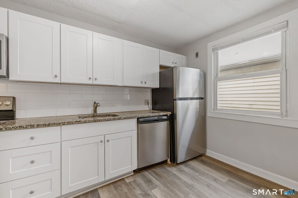 Call for Availability - Welcome to 3 New Hampshire Drive, a spacious and refreshed rental that blends classic charm with everyday comfort in a convenient New Britain location. This light filled residence features a clean, neutral palette and an easy flowing layout, starting with a bright living room accented by a ceiling fan and durable vinyl flooring that continues into the kitchen. The kitchen offers crisp white cabinetry, granite style counters, a subway tile backsplash, and stainless steel appliances, creating a functional and inviting space for daily living. Upstairs, three well proportioned bedrooms showcase hardwood floors and abundant natural light, providing comfortable retreats for rest or work from home. The full bath features timeless tile, a tub and shower combination, and updated fixtures. Additional highlights include a partial basement for storage, vinyl siding, public utilities, and a quiet neighborhood setting with easy access to local shops, schools, and commuter routes. This home offers space, simplicity, and a welcoming feel, making it a great place to settle in and feel right at home. MLS# 24148152