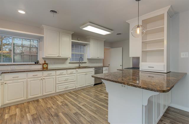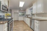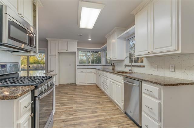 Amazing lease opportunity! Welcome to this charming, beautifully updated home nestled on a serene and private half-acre lot, updated in 2022. Surrounded by mature trees and lush landscaping, this property offers both tranquility and convenience, making it the perfect retreat for those seeking space and style. Step inside to discover a bright, open floor plan designed for comfortable living and effortless entertaining. The inviting living room features elegant built-in shelving and a stunning picture window that fills the space with natural light while offering picturesque views of the expansive backyard. The thoughtfully designed kitchen is a true standout. Enjoy gleaming granite countertops, an abundance of cabinet space for all your storage needs, and sleek stainless-steel appliances, including a gas stove, built-in microwave, and dishwasher. Whether you're preparing a quick breakfast or hosting a dinner party, this kitchen is equipped to handle it all. Throughout the home, you'll find beautiful, low-maintenance luxury vinyl plank flooring that offers the warm look of wood with superior durability, ideal for everyday living. The spacious primary suite is a true retreat, offering a peaceful space to unwind. The ensuite bathroom boasts a large double vanity with separate dressing area, a relaxing soaker tub, and a separate walk-in shower for added convenience. Step outside and enjoy the private backyard oasis, complete with a covered patio, perfect for grilling, dining, or simply enjoying the peaceful surroundings. A privacy fence encloses the yard, making it great for pets, kids, or just unwinding in seclusion. This home offers the perfect blend of modern updates, classic charm, and outdoor living.