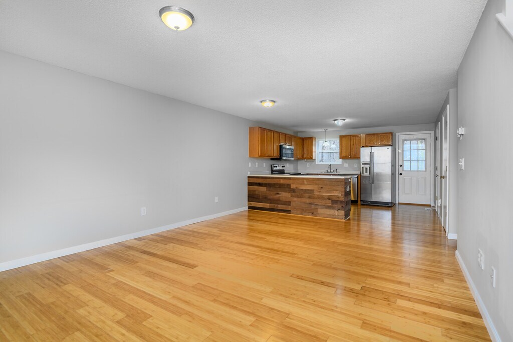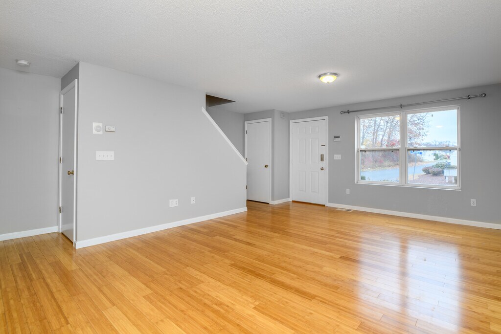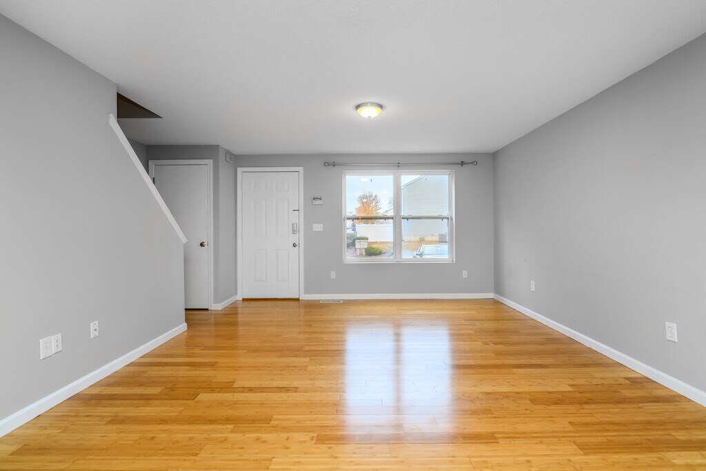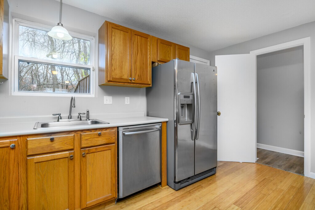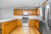 Call for Availability - Stunning and beautifully remodeled unit in one of the best locations at Milestone Commons! Enjoy a peaceful setting with sliders leading to a private concrete patio overlooking quiet woods. The open floor plan features all-new lighting, nicely painted throughout, and updated flooring - including bamboo wood floors on the main level, newer laminate in both bathrooms, and plush carpeting upstairs. The kitchen stands out with unique wood paneling on the cabinet face, newer stainless-steel appliances (refrigerator, range, dishwasher, and built-in microwave), and a stainless sink with brushed nickel fixtures. The full bath offers a newer porcelain-top vanity, matching fixtures, and updated flooring. Upstairs, you'll find two spacious bedrooms - the primary measuring 14' x 15' and the second 12' x 13' - along with two linen closets in the hallway. Step out from the kitchen to a deck, or from the expansive 17' x 30' lower level (with slider to the patio). MLS# 24140119
