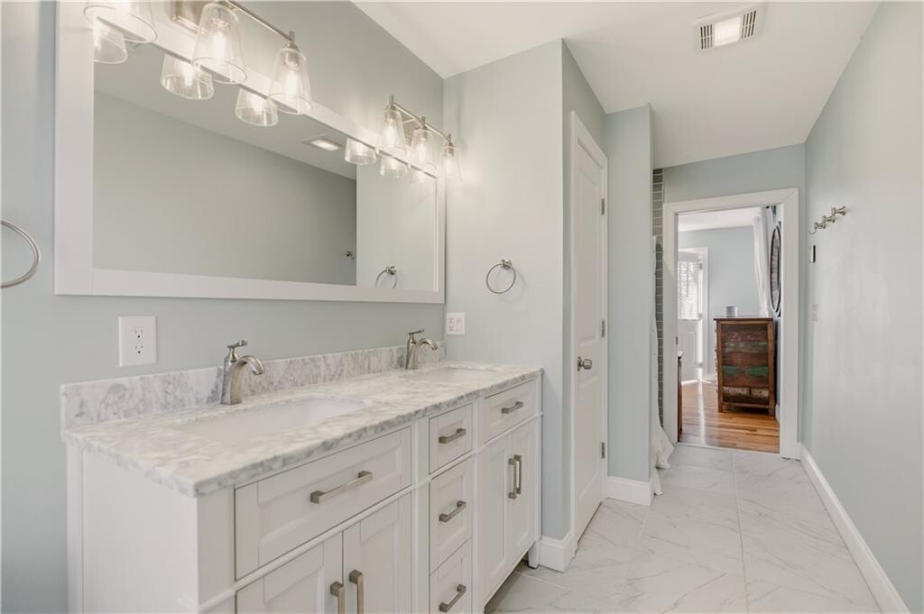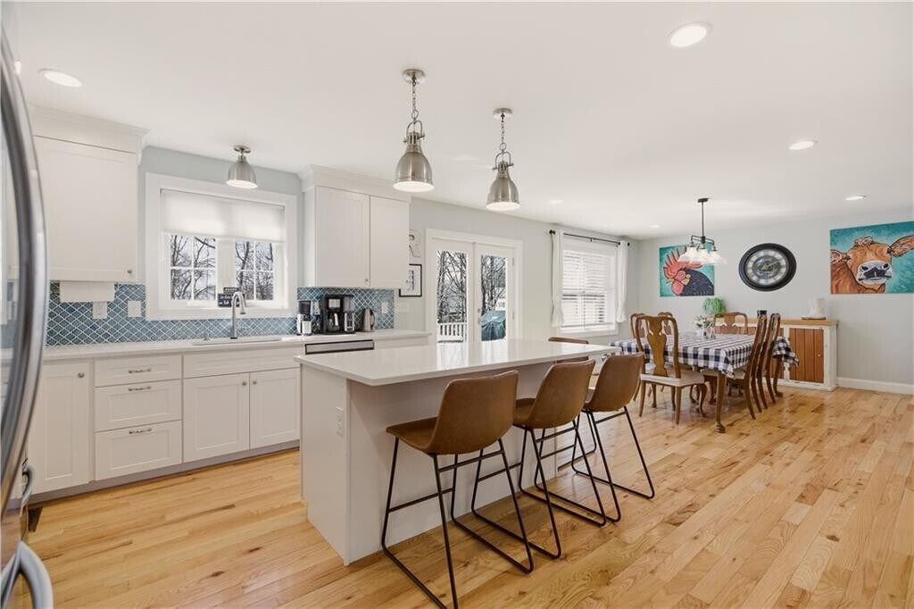 Newer construction home tucked away on a quiet street,with easy access to the best of Bristol! Built in 2020,this beautifully maintained home features custom finishes,tranquil coastal tones,and hardwood floors throughout. The open-concept main level offers a spacious living room with a cozy gas fireplace,flowing seamlessly into a stunning kitchen with a large island,quartz countertops,mosaic backsplash,and stainless steel LG appliances. The dining area fits a full-size table,with French doors opening directly to the deck—perfect for grilling and enjoying summer days. Just off the kitchen,you'll find a half bath,laundry area,and direct access to the 2-car garage for added convenience. Upstairs,the primary suite includes a private ensuite bathroom and a Juliet balcony overlooking the backyard. Two additional bedrooms,a full bathroom,and a large bonus room—ideal for a home office,playroom,or additional living space—complete the second floor. The walkout basement has been partially finished to include a private ensuite bedroom with a coffee bar and mini fridge—perfect for guests,extended family,or added privacy. There is also additional space for storage,with direct access to the patio and fenced backyard. Outside,enjoy a landscaped yard featuring raised beds,berry bushes,and fruit trees—ideal for gardening or relaxing outdoors. Additional features include central air,gas heat,and a 2-car garage. MLS ID 1408589