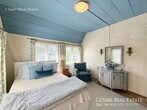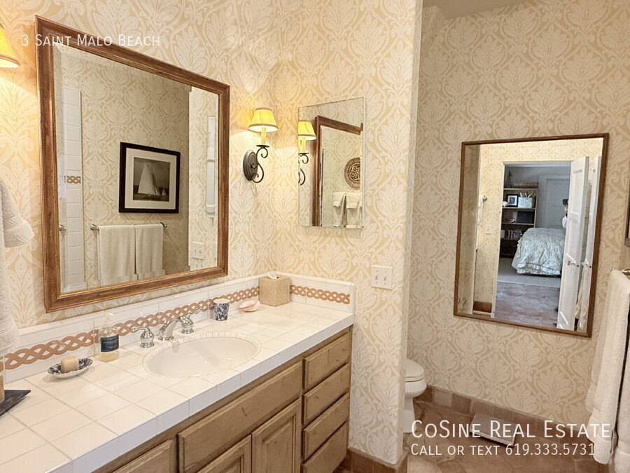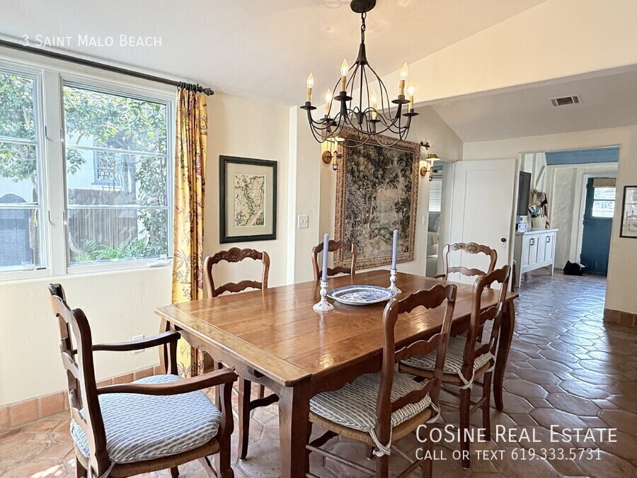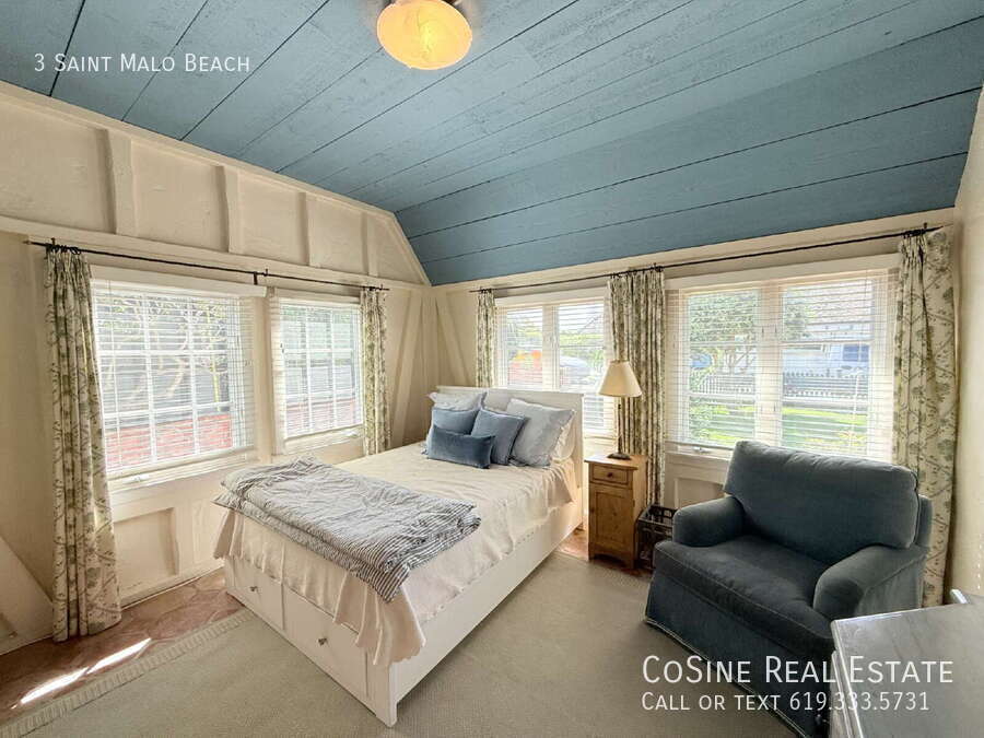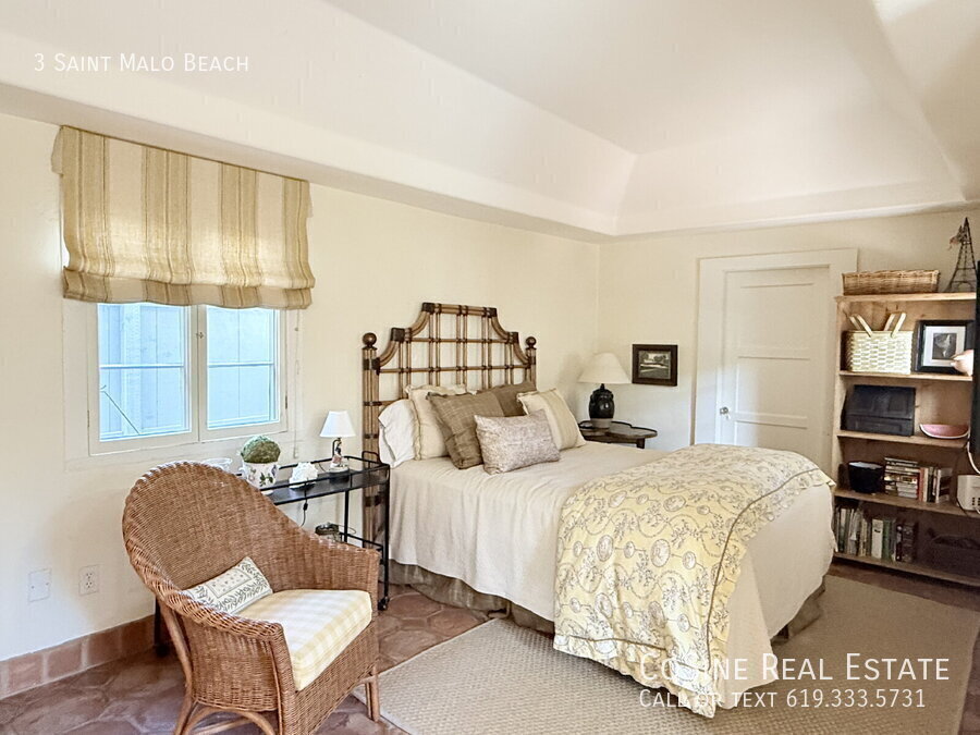 This fully furnished beachfront home offers a rare retreat within the highly coveted gated Saint Malo community, defined by its authentic French Normandy charm. The main residence features an airy, open-concept first floor where the kitchen flows into the dining and living areas, anchored by high ceilings and exposed natural wood beams. Large windows and strategically placed skylights illuminate the terracotta tile flooring that runs throughout the home, creating a warm and cohesive aesthetic. Two bedrooms and two full bathrooms are on the ground level, providing a practical layout for various living arrangements. The second story serves as a private sanctuary, housing a dedicated library with a loft space, along with the primary bedroom. For those seeking extra privacy for guests or a quiet workspace, the property includes a detached casita in the backyard, complete with its own bedroom and full bathroom. Outdoor living is centered around a private backyard equipped with a large dining table and barbecue, ideal for quiet evenings after a day at the shore. This property is offered fully furnished and meticulously stocked, making it an ideal choice for a long-term vacation or a focused work retreat. From the kitchen cookware and silver to the linens and blankets, every detail is provided to ensure a seamless transition. You can simply walk through the door and begin your stay, as the home is prepared with everything needed for daily living and entertaining. The backyard, featuring a large dining table and barbecue, serves as an extension of the living space, perfect for enjoying the coastal climate in a private setting. As a resident of this historic enclave, you enjoy access to the private Saint Malo Beach Club, which features a beachside cabana, sand volleyball, and a fire pit area perched just above the Pacific. The community provides exclusive, gated access to a pristine stretch of sand that transitions seamlessly into the public beach, offering the perfect balance of seclusion and coastal exploration. On-site recreation is abundant with community tennis, pickleball, and paddleball courts, as well as a bocce ball area and playground. This incredible home provides a unique opportunity to experience the quiet, "old-world" prestige of one of Southern California’s most storied coastal neighborhoods. One-month minimum lease. Professionally Managed by CoSine Real Estate. DRE #01976619