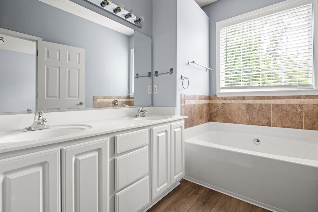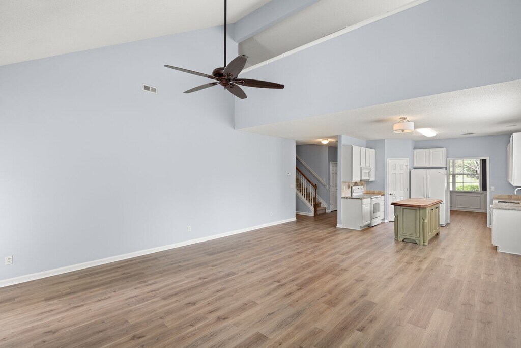 This sweet home in Hadley Park ticks all the boxes! Open-plan living, main floor primary bedroom suite, fenced yard, cul-de-sac location, formal dining room, attached garage, plus upstairs bonus space! The living room features high ceilings, open with the upper-floor loft/ bonus space, a gas fireplace, and access to the back patio and fenced backyard. Attractive trim and wainscoting elevates the formal dining room. The open kitchen offers a pantry, wood-topped island, deep sink, and granite counter tops. Appliances include the smooth-top range, built-in microwave, French door refrigerator, dishwasher, and disposal. The laundry/ mudroom has washer and dryer hookups and is off of the garage. The spacious main floor primary suite includes a bathroom with a double-sink vanity, shower, a separate garden bathtub, and a walk-in closet with built-ins. The bonus room at the top of the stairs is open to the great room below - perfect for your office or den. Also upstairs: two bedrooms and a full bathroom which has a double-sink vanity and a combination bathtub/ shower. Flooring throughout the main level is luxury vinyl plank; the upper floor bedrooms and bonus space are carpeted. Great location in the Hadley Park neighborhood, close to Biltmore Park and the NC Arboretum, convenient to interstates and downtown Asheville. Central heat (natural gas) and central air conditioning. Tenant responsible for all utilities, including natural gas, electricity, water/sewer, and landscaping/ lawn care inside the fenced backyard. No smoking. No pets. No cosigners.