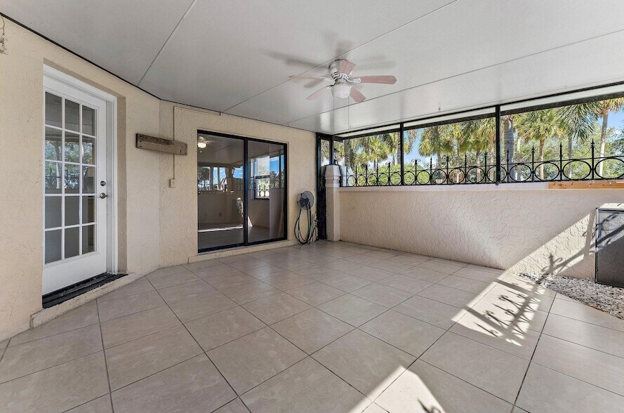 Rarely available, large villa with private patio. Kitchen with breakfast bar opening to dining room. Large screened tile patio for outside living. Two master suites upstairs, each with its own bath. First floor powder room. Gated complex with resort style amenities. Two pools, spa, gym and business center. Convenient to beach, shops, restaurants, schools.