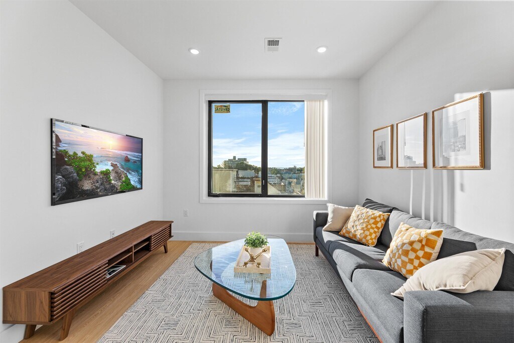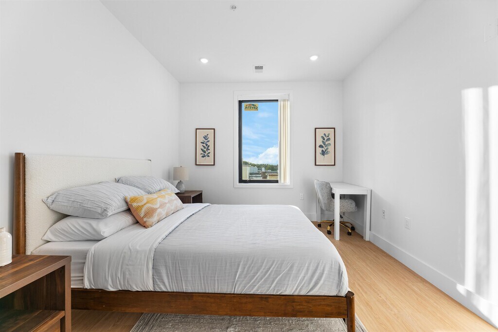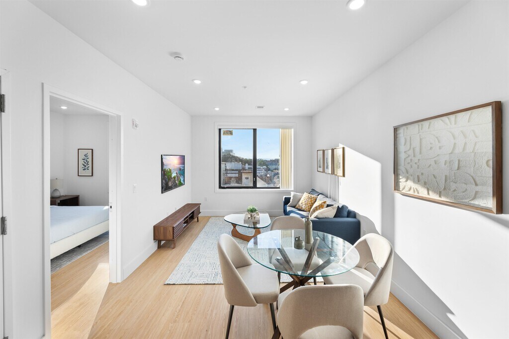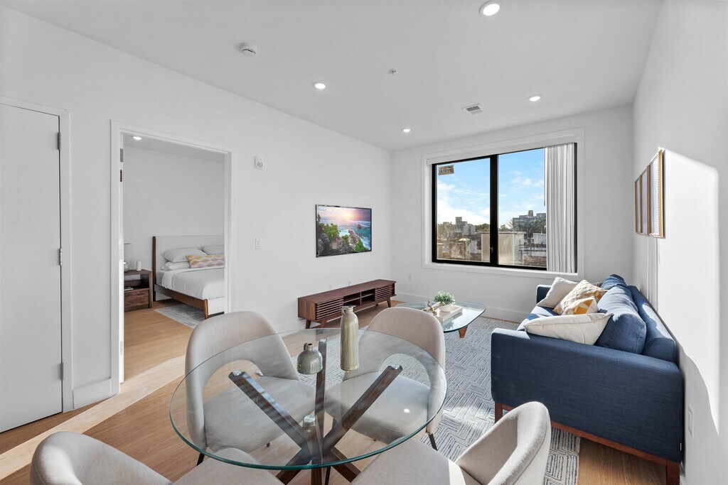 Oversized 1 bedroom with Den that can be used as 2nd bedroom. Welcome to The Dumont! A brand new building offering luxurious living with high-end appliances and a Latch keyless access. Our spacious apartments feature stainless steel appliances, in-unit washer/dryer, linen closets, and pantries. Select units also include walk-in closets, a den that can be utilized as a second bedroom or home office, and stunning NYC views of the skyline Conveniently situated within walking distance to Journal Square PATH and just a short drive to Grove Street PATH, Hoboken Terminal, and Newport Centre, The Dumont ensures easy access to all major transportation hubs. Multiple units available, showroom open from 11AM-7PM. Photos of similar units.