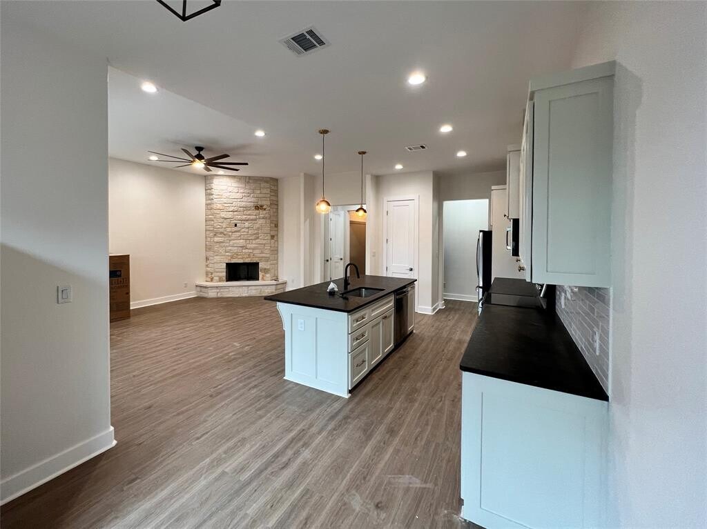 Warm and welcoming 2023 custom build by Havenwood Estates home builders. Design by local designer M. Elliott Studio. 1992 sqft, 4 bedroom, 2 bath home built on Woodcreek North greenspace! This is your opportunity to jump into a custom built home completed January 2023. Exterior features: Steel front door, front and rear porch (with exterior fan), large surrounding trees. Interior features: 10'-11' ceilings, large spaces with abundant light, 8' interior doors, serene views out the large rear windows, custom cabinets and hardware throughout, breakfast bar and breakfast area, wood burning fireplace, Large master, Dual vanity master bath with separate garden tub and shower, walk-in closet, separate water closet, 3 additional bedrooms or 2 beds + office, study desk/vanity in rear bedroom, durable and insulated laminate throughout. Home will be managed by Cornerstone Real Property Management. Well qualified applicants will have clean credit, verifiable rental or mortgage history, and income 3 times gross rent. MLS ID 5945270