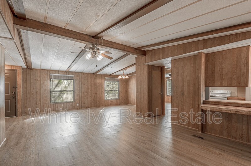 3 bedroom/2 bath home on almost an acre! This spacious home has a split-bedroom floor plan, primary bedroom with private en suite bath. Large and open Living & dining areas. Kitchen has dishwasher, range, and refrigerator...breakfast bar opens to the Dining Room. Utility Room with space for full-size washer and dryer. Water is via private water well; property is on septic system.