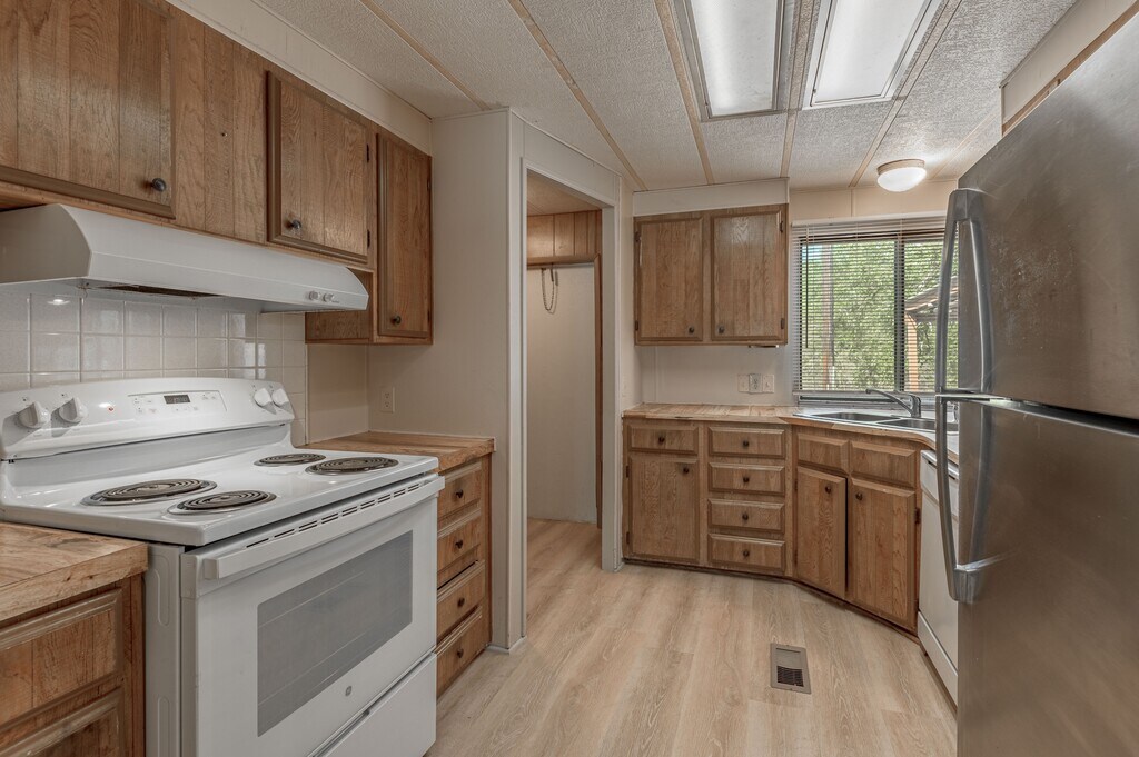 3 bedroom/2 bath home on almost an acre! This spacious home has a split-bedroom floor plan, primary bedroom with private en suite bath. Large and open Living & dining areas. Kitchen has dishwasher, range, and refrigerator...breakfast bar opens to the Dining Room. Utility Room with space for full-size washer and dryer. Water is via private water well; property is on septic system.