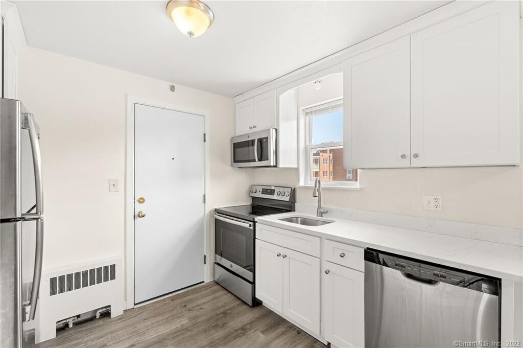 Call for Availability - Spacious and bright 1 BR/1 Bath condo just a short walk to West Hartford Center and all it has to offer. This unit has an open floor plan with an updated kitchen featuring white cabinets, stainless steel appliances and quartz counters. The kitchen opens to a dining area and a large living room. The bedroom is good-sized and has plenty of closet space. There is a full bath with classic white tile. Off the dining area are some convenient built-ins for extra storage. Heat and Hot Water included in rent. The unit comes with a garage space (16B). The unit comes with storage in the basement. Coin-op laundry is also down the back stairs in the basement of the building. This unit is move in ready, with shopping and restaurants at your doorstep, along with the Trout Brook Trails. No pets or smoking. Application, credit/background/eviction check required. Pictures are from before current tenant moved in. MLS# 24135908