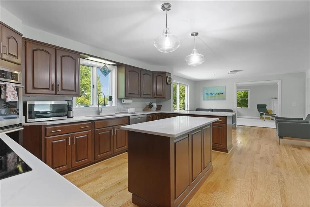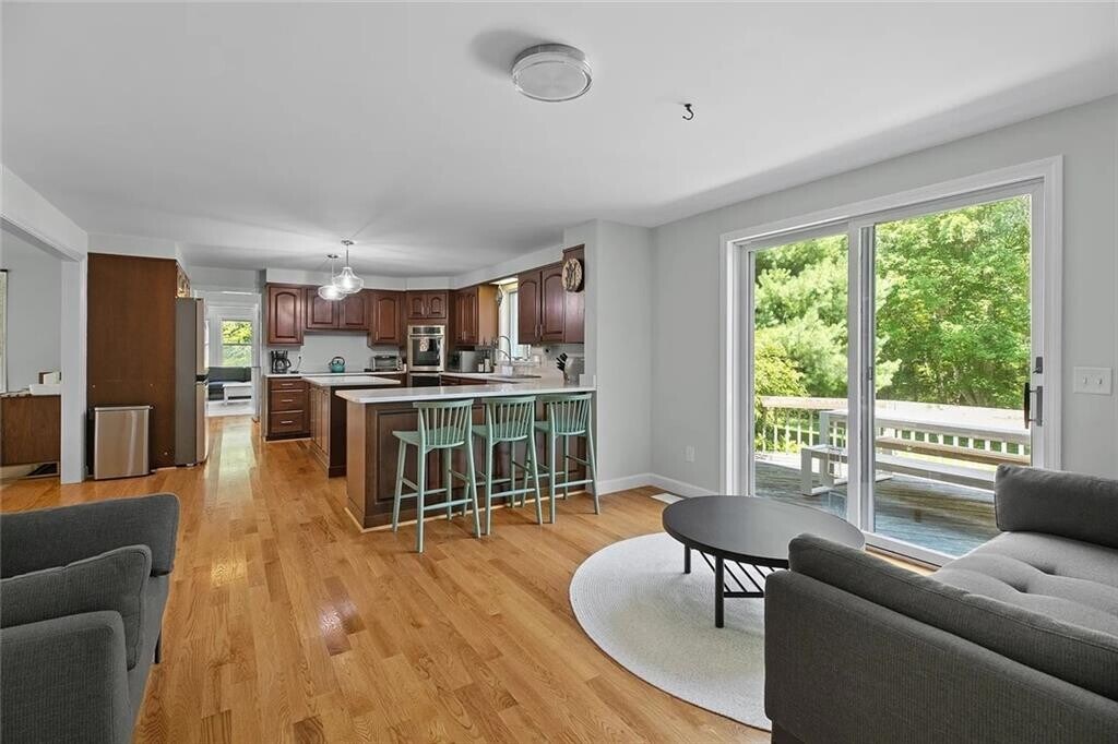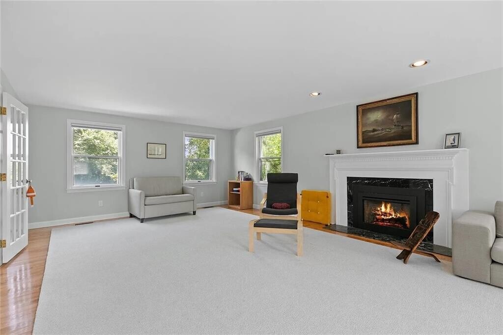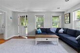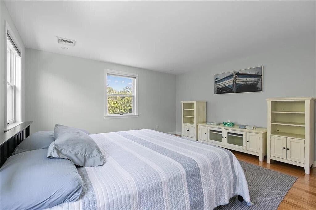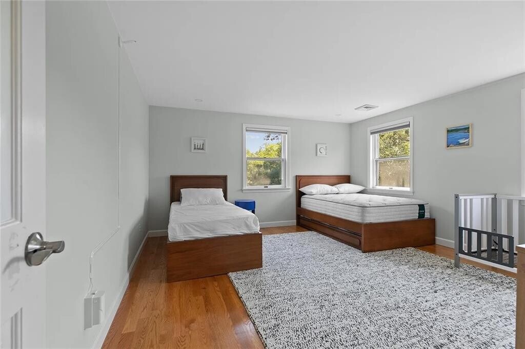 Single family with carriage house at Beavertail location. Park like setting! This spacious,furnished colonial comprises a main building with 3 large bedrooms and 2.5 baths as well as a separate 2 bedroom,2 bath accessory building. The main house features an open floorplan,formal dining room and an eat in kitchen. There are a separate den,laundry room and half bath on the first floor. Beautifully refinished hardwood floors throughout the house. There is a gas fireplace in the living room. The second floor features three very large bedrooms,including one with an ensuite bathroom. The 2 story accessory building has been fully renovated with concrete floor,ductless air conditioning and heating,2 baths with showers and very large and bright bedrooms. Distant peeks of the water. Please take note that this accessory building does not have a full kitchen. Each building has its own deck,perfect for wildlife watching. The expansive lawn lends itself to outdoor fun. Walk to nearby Mackerel Cove beach or bicycle leisurely into town. Property could be available a few days sooner than September 1. Main house has air conditioning and geothermal heat. Furnishings are modern and minimalist. Rare find in a private and peaceful setting on over 2 acres of land. Accessory building has its own laundry,it is great for visitors or a nanny. Pets may be accepted on a case by case basis. In ADDITION to the posted rent landlord will include utilities for 800.00 and wifi a month. MLS ID 1410439