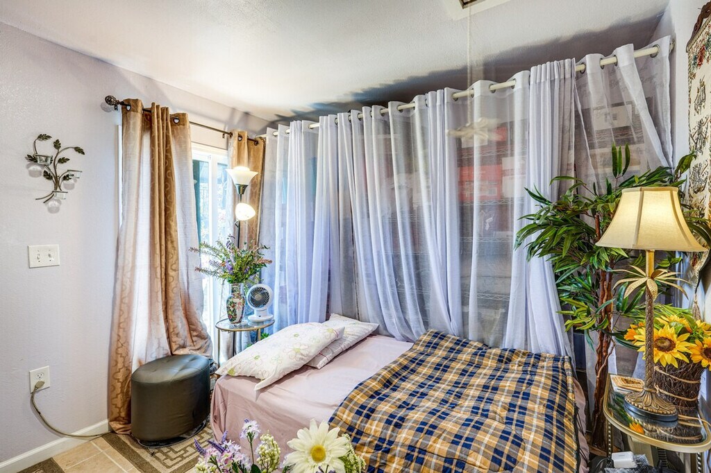Step into a whole new world and feel at home in this Vallejo vacation rental, a 1-bedroom, 1-bath retreat perfect for a restful Bay Area getaway. The property requires one step to access. This getaway features a shared grill, garden, outdoor seating, and a shared gazebo. The kitchen is equipped with a fridge, microwave, oven, stove, drip coffee maker, dishware, flatware, and spices. Indoor amenities include smart TVs, houseplants, a dining table, ceiling fans, towels, linens, complimentary toiletries, and keyless entry. There is a ceiling fan, but no air conditioning. Driveway parking is available for 2 vehicles. Located in a quiet cul-de-sac, this apartment is perfect for exploring the Bay Area. You can relax in the luxurious gazebo, take a trip to Napa to explore local vineyards, or practice your golf swing at Blue Rock Springs Golf Club. You could even let out your inner child at Six Flags Discovery Kingdom, just 6 miles away. No smoking, pets, events, parties, or large gatherings are allowed. The homeowner lives on-site in a different unit and may be present during your stay. Your safety matters. This property features a video doorbell device with an exterior security camera facing the front outdoor entry. The camera does not look into any interior spaces and actively records video when motion is detected or when the video doorbell button is pressed. [SI]