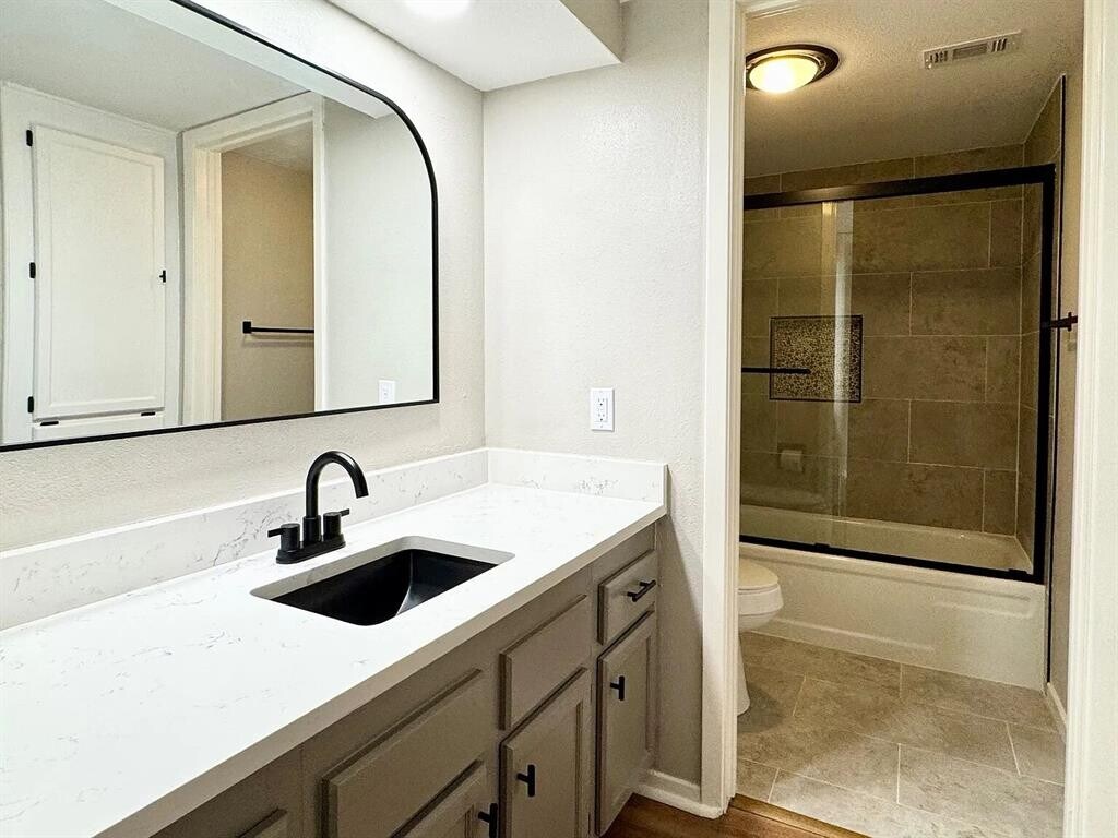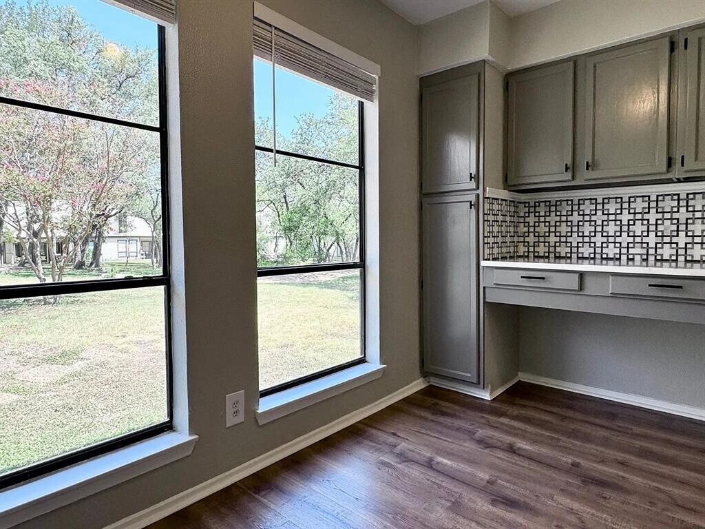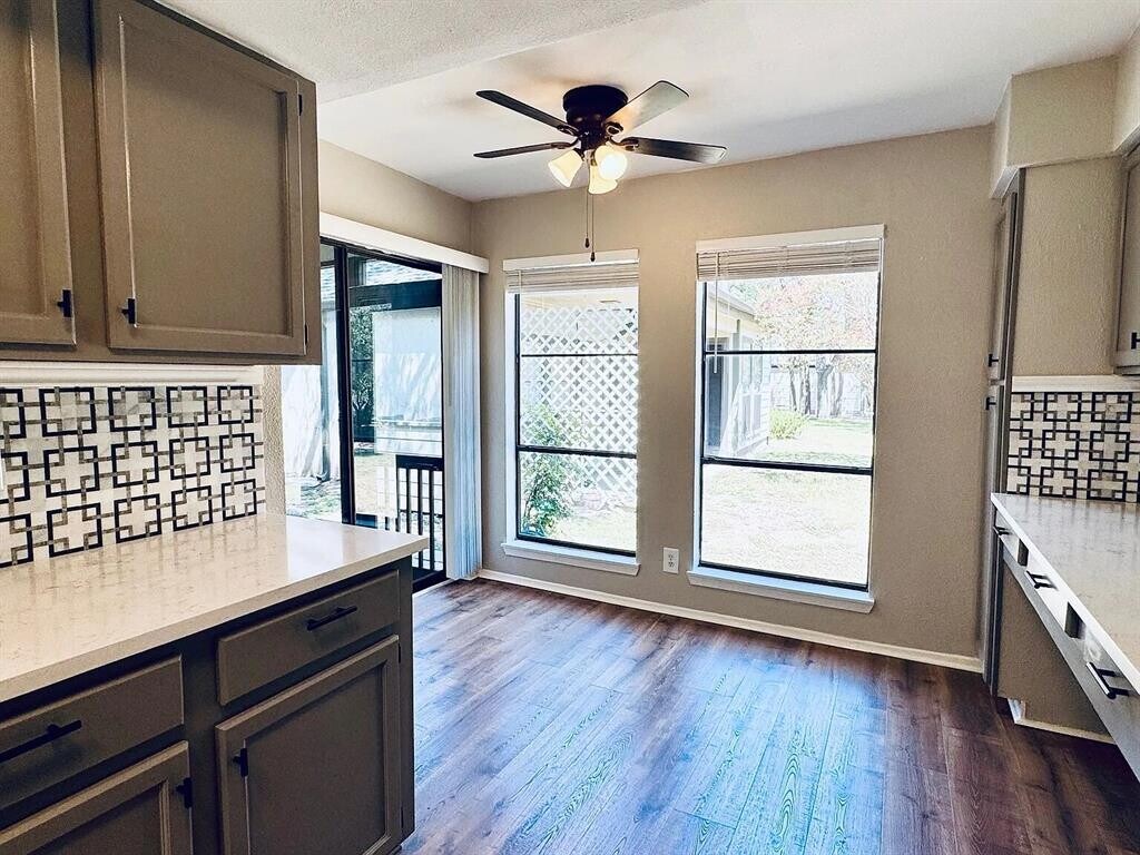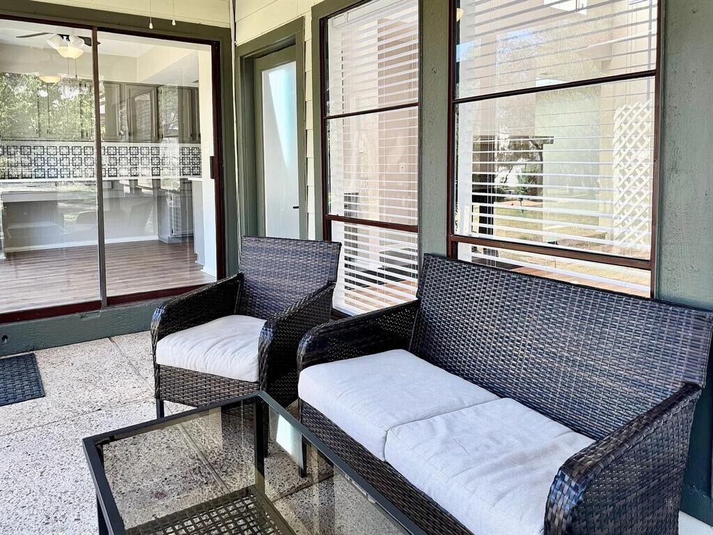 This beautifully newly remodeled, single-story condo in the heart of Lakeway offers a peaceful and inviting retreat. Featuring 3 bedrooms and 2 full bathrooms, this home is perfect for those seeking comfort and serenity. Just outside, you'll find a lovely pool surrounded by majestic oak trees, providing a picturesque setting for relaxation. Inside, the condo boasts an open and airy living space with soaring ceilings and floor-to-ceiling windows that flood the home with natural light. The central focus of the living room is a cozy wood-burning fireplace, perfect for creating warmth and ambiance. A wet bar adds a touch of elegance, making it ideal for entertaining guests. The formal dining room, adorned with beautiful skylights, leads to a well-equipped kitchen featuring gleaming hardwood vinyl plank flooring and a breakfast room that opens to an outdoor covered patio. This screened-in patio, accessible from both the kitchen and living room, offers a peaceful spot to unwind and enjoy the sounds of nature. The primary suite is generously sized, with two walk-in closets and a full en-suite bathroom. Two additional bedrooms and a charming full bathroom with a shower/tub combination complete the living space. Fresh paint throughout adds a modern touch to this warm and inviting home. Lakeway offers access to Lake Travis, hiking and biking trails at Hamilton Greenbelt, and the nearby Lakeway City Park, which features a dog park, playgrounds, hiking/biking/ jogging trails, and water activities. Short distance to plentiful shops and restaurants in Lakeway and Hill Country Galleria. Located within the highly esteemed LTISD.