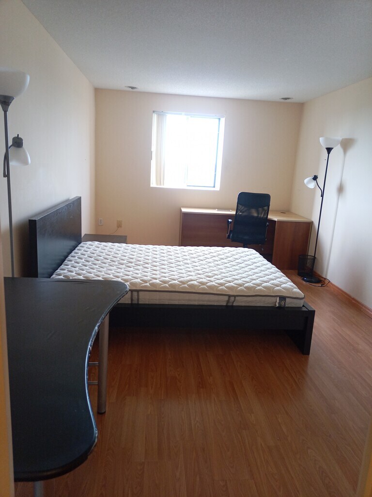 Bright & Spacious Apartment – Prime Location Near Campus & Shopping! Building Perks: • Free outdoor parking for easy convenience • Fully equipped fitness room with treadmill, weights, bicycle, and sauna • Unbeatable location at Wonderland & Sarnia – bus stop beside apartment (Routes 10, 31, 29, 9) for a quick 5-10 min ride to campus or a short walk • 5 min walk to Costco, grocery stores, restaurants, and shopping centers Living Space Highlights: • Sun-filled bay window & open balcony for fresh air and natural light all day • Furnished with a dining table, chairs, and a cozy sofa-bed for extra comfort • In-suite laundry – washer and dryer included for ultimate convenience Master Bedroom – Your Private Retreat: • Fully furnished with a queen-size bed, two large office desks, and an ergonomic office chair • Walk-in closet and private ensuite bathroom with a shower – no sharing needed! Spacious Second Bedroom: • Fully furnished with a queen-size bed, large office desk, and office chair • Dedicated bathroom with a bathtub and shower for extra comfort This is the perfect space for students looking for a bright, well-located, and comfortable home! Let me know if you'd like any further refinements!