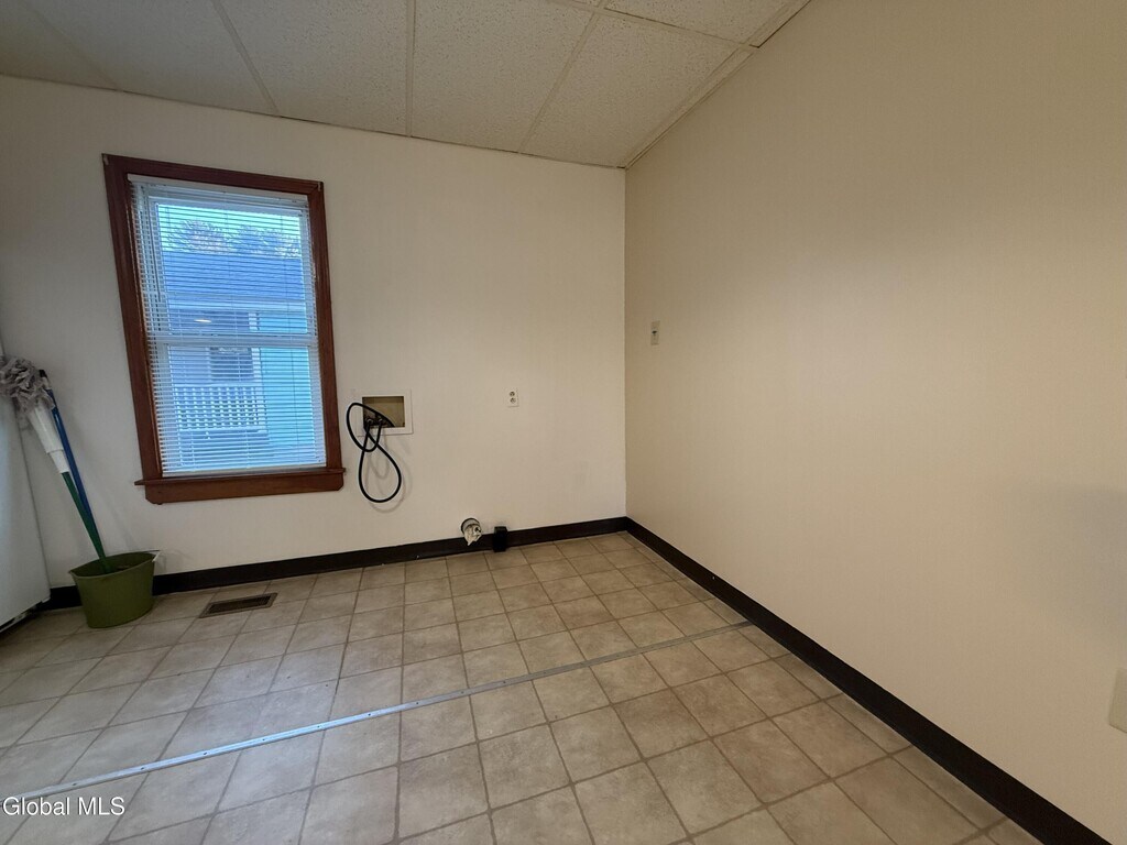 Well-maintained 3 bedroom,1 bath 1st floor apartment located in a quiet Glens Falls neighborhood. Spacious formal dining room,large living room,and a bright kitchen with washer/dryer hookups for added convenience. An enclosed back porch makes the perfect mudroom,offering easy access from the off-street parking area that accommodates 2 cars. Additional perks include trash removal,lawn care,and snow removal—all included in the rent. Tenant is responsible for utilities. No pets,please.