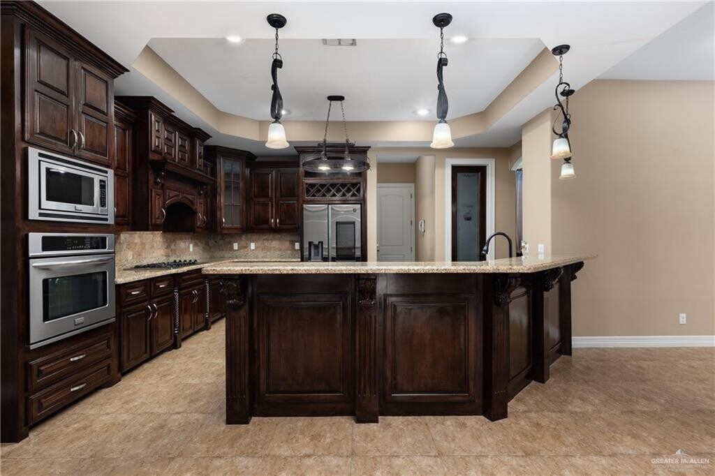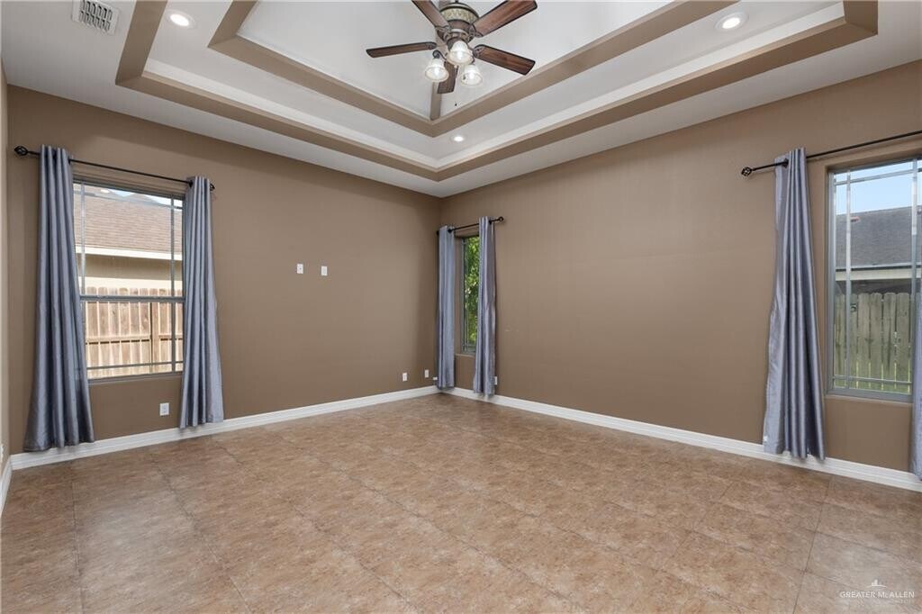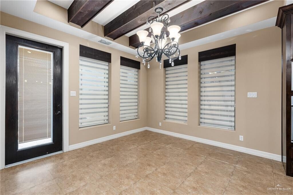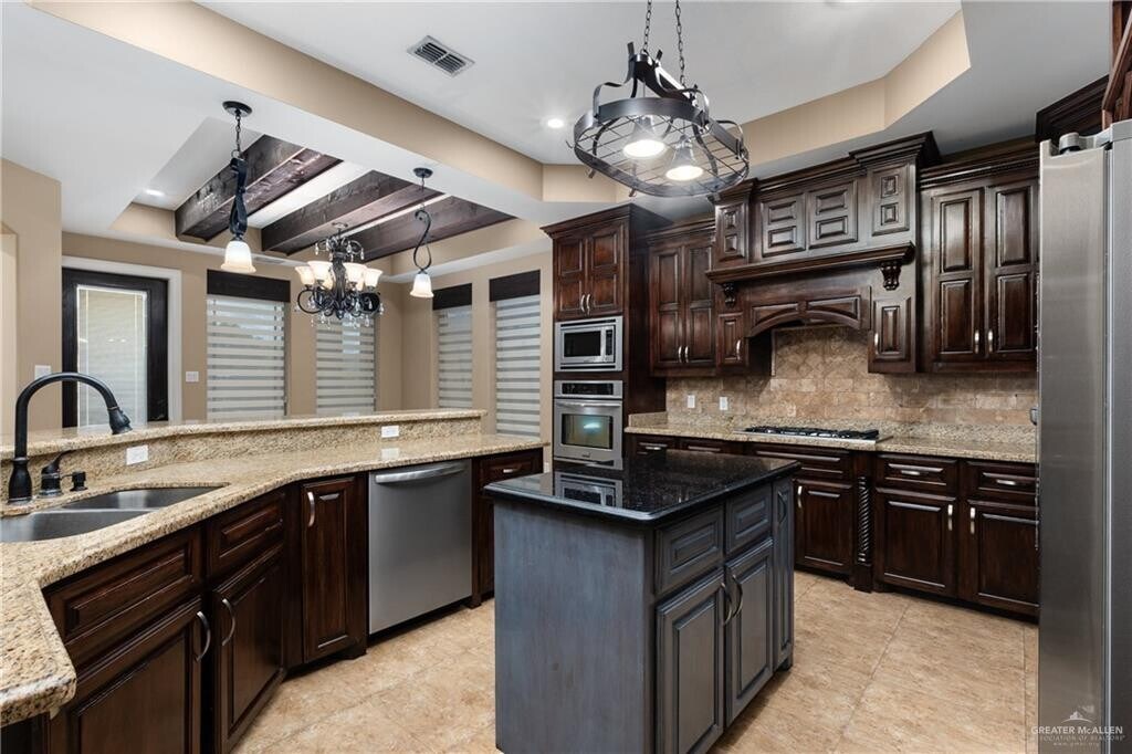 Spanish Mediterranean Style home for lease in the gated Pepper Ridge Subdivision. This stunning residence offers 4 bedrooms,3.5 bathrooms,2 living areas,2 dining areas,and a versatile bonus room. The master suite is located on the first floor with a luxurious bath and walk-in closet. Perfect for entertaining,the gourmet kitchen features granite countertops,a large island,a breakfast area,and stainless steel appliances,opening to the spacious family room. Additional highlights include high decorative ceilings,a wrought-iron staircase,a laundry room,an upstairs balcony,a BBQ area,professional landscaping,and a private pool. Located in the heart of Edinburg,this home blends elegance,comfort,and convenience in one of the city’s most desirable gated communities.