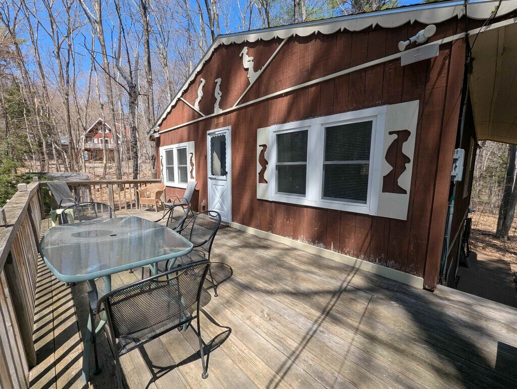 Dive into four seasons of fun at this classic Eidelweiss chalet! This charming home is available for rent and boasts the best of both worlds: beach and ski access. The first floor features 3 bedrooms and a ¾ bathroom, while upstairs offers a sunny deck with water views, a full bathroom, and an open living/kitchen/dining area. Plus, for your convenience, the chalet comes partially furnished and includes recent upgrades like new windows, a washer, dryer, and dishwasher. Enjoy relaxing days on the beach, kayaking adventures, or head to King Pine or Cranmore Mountain for a thrilling ski trip. This chalet is your ideal base for year-round fun! MLS# 5036901