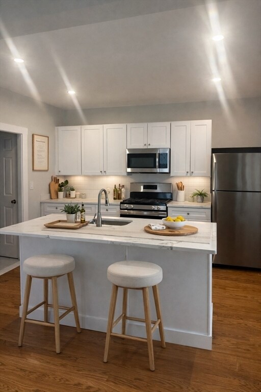 This recently updated 3-bedroom,1-bathroom residence at 30 Monmouth Street in East Boston's Eagle Hill features a modern white kitchen with stainless steel appliances,a central kitchen island,and the convenience of in-unit laundry. The interior is finished with classic hardwood floors and window air conditioning,while a private porch provides a perfect dedicated space for outdoor entertaining. Located just Miles from Maverick and Airport Blue Line stations,the property offers an exceptional 8.2/10 transit score with immediate access to several local bus lines. Residents are steps away from a diverse culinary scene,including local favorites like D'Parma,Angela's Cafe,and the legendary Santarpio's Pizza,along with upscale waterfront dining at MIDA. MLS# 73505420