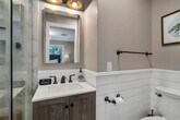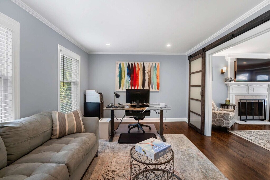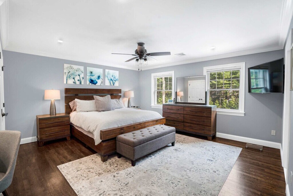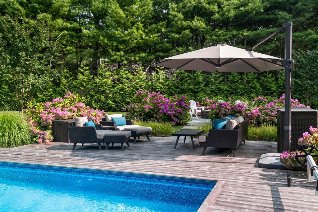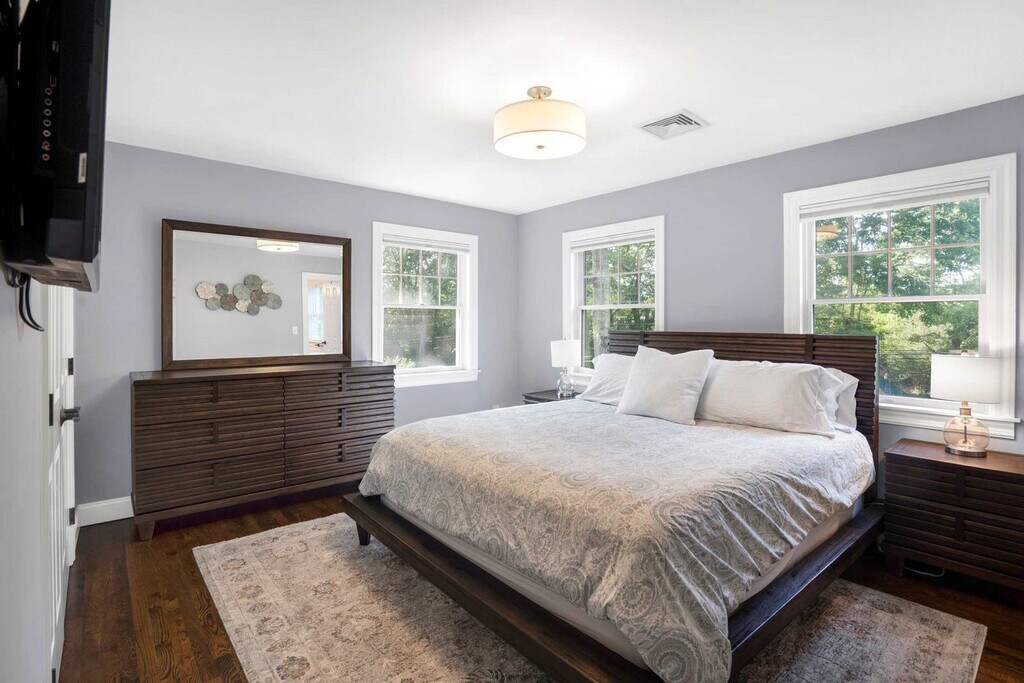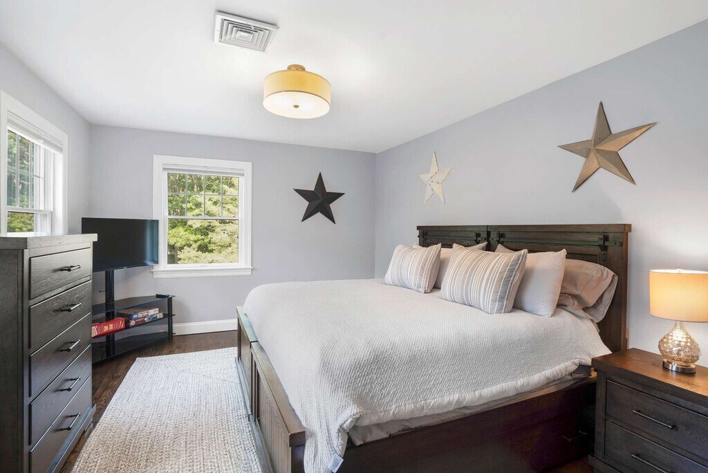 The advertised rate of $23,618/month is the lowest available price, based on a 1 month(s) stay with a move-in date of April 10, 2026. Rates vary depending on the duration of stay, season, and other parameters. For exact pricing and additional pricing components, please visit our website and enter your desired move-in and move-out dates. The rate is applicable when billed upfront; it can be higher if billed in multiple payments. Feel at home in this 4-bedroom home on a half-acre landscaped lot in Southampton. This two-level home offers 3.5 bathrooms and is minutes from Southampton Village, Shinnecock Hills Golf Club, and Coopers Beach. The main level features an open living and dining area with hardwood floors and crown molding. The kitchen has white shaker cabinetry, granite countertops, a center island with bar seating, and stainless steel appliances. A formal dining room seats eight. There is an in-unit LG washer and dryer and central AC. Upstairs, the primary bedroom has a king-size bed, ceiling fan, and wall-mounted TV. The en suite has a jetted soaking tub, glass-enclosed shower with subway tile, and a double vanity. The second bedroom has a king-size bed with its own en suite bath featuring shiplap wainscoting. The third bedroom has a queen-size bed. The fourth bedroom has two twin beds. Bedrooms three and four share a hall bath with a tub-shower. The backyard has a heated in-ground pool surrounded by mature hydrangea gardens and privacy hedging. A bluestone patio with Adirondack seating surrounds the firepit. The outdoor shower has a cedar enclosure and rain head. The pool deck has lounge seating and umbrella coverage. Pool heat is available at $45 per day. Parking is available for up to four vehicles in the driveway. Southampton is centrally located between Southampton Village, Sag Harbor, and Water Mill with access to ocean and bay beaches. Nearby attractions include Southampton Village (5-minute drive), Stop & Shop (5-minute drive), 75 Main (7-minute drive), Southampton Publick House (7-minute drive), Duck Walk Vineyard (8-minute drive), Coopers Beach (10-minute drive), and Shinnecock Hills Golf Club (10-minute drive). Quiet hours are observed between 10 PM and 8 AM. The primary renter must be 25 or older. There is a 14-day minimum stay required per Town of Southampton regulations. A separate den with sliding barn doors and a desk can be closed off from the main living area, providing a separate workspace. [SI]