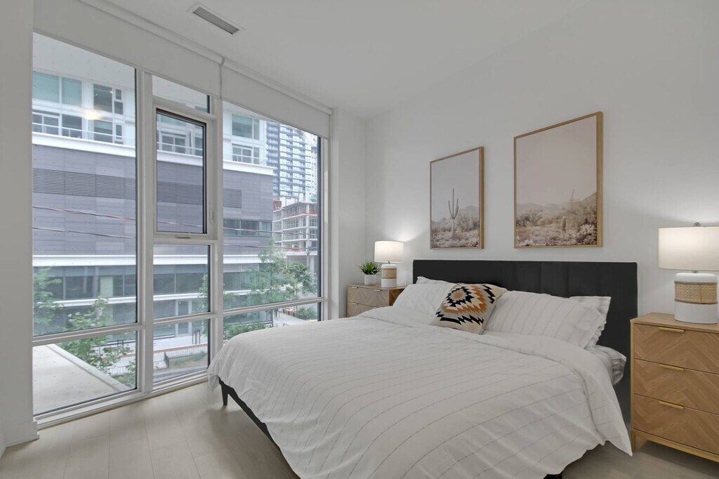 The advertised rate of C$4,645/month is the lowest available price, based on a 1 month(s) stay with a move-in date of November 6, 2026. Rates vary depending on the duration of stay, season, and other parameters. For exact pricing and additional pricing components, please visit our website and enter your desired move-in and move-out dates. The rate is applicable when billed upfront; it can be higher if billed in multiple payments. Feel at home in this stylish 2-bedroom, 2-bath townhome in Toronto’s vibrant Liberty Village. This modern and comfy getaway is the perfect base to explore the city. Enjoy a bright, open-concept living space and a fully equipped kitchen. This home also features high-speed Wi-Fi, a Smart TV, and in-unit laundry. Parking is available for one vehicle, and pets are welcome with a fee of $25 per pet per night. Surrounded by trendy restaurants, cafés, and bars, this home is close to the waterfront and in a prime location. Guests reserved for 28 days or more are responsible for their own consumables after the initial reserve provided is used. [SI]