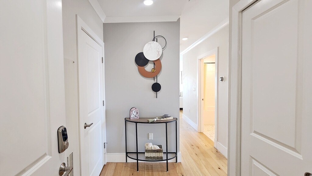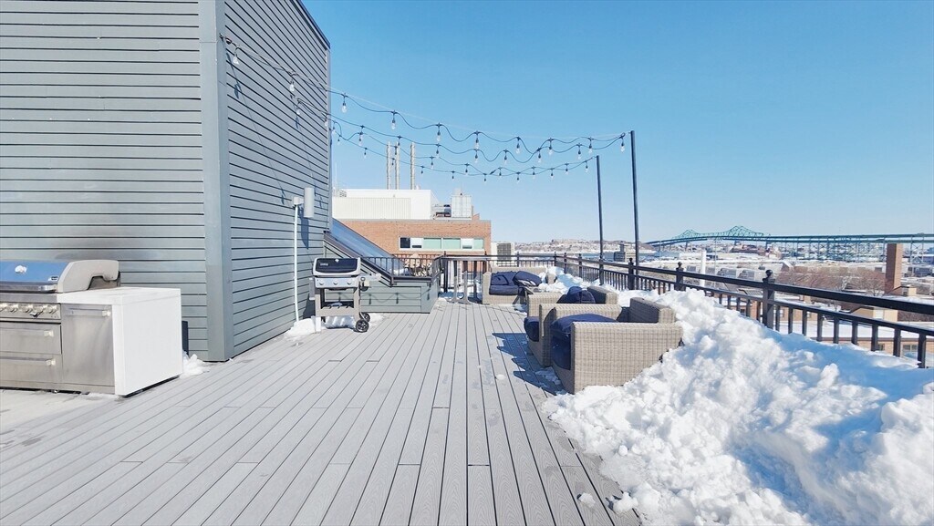 Built in 2018,this stunning top-floor corner unit at The Lumen offers 2 bedrooms and 2 full baths with dramatic city views and abundant natural light. Featuring soaring ceilings,wide plank oak flooring,and a thoughtfully designed open layout,this home blends modern luxury with everyday functionality. The custom kitchen boasts JennAir stainless steel appliances,quartz countertops,marble backsplash,gas cooking,and sleek cabinetry. The living area includes built-in entertainment storage and expansive windows framing views of Boston and the Bunker Hill Monument. The spacious primary suite offers custom closet systems and a beautifully appointed en-suite bath. The second bedroom is ideal for guests,office,or nursery,complemented by a full second bath. In-unit washer/dryer and central air complete the home. Additional highlights include garage parking,elevator access,professional management,fitness room,bike storage,and an impressive furnished roof deck with gas grill and MLS# 73482055