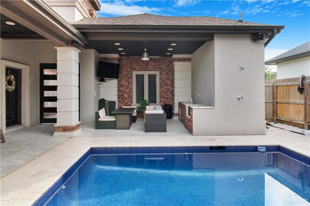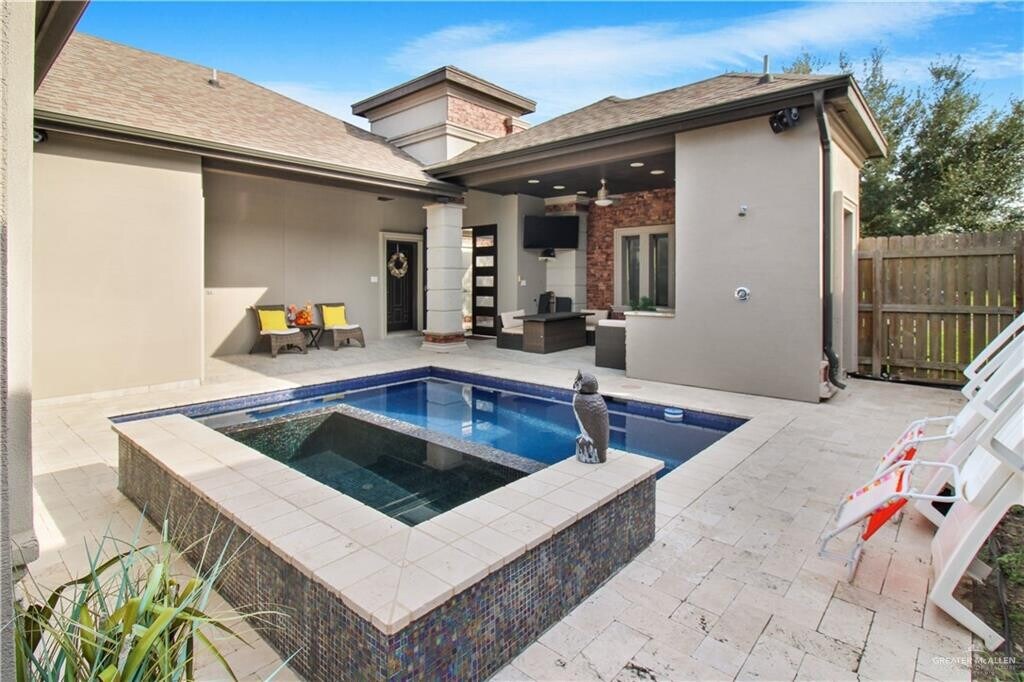 Captivating Home for Rent in McAllen,TX! Discover this stunning 3-bedroom,2.5-bath home featuring decorative ceilings and a modern kitchen with stylish finishes. Equipped with refrigerator,stove,dishwasher,and microwave,this home combines comfort and functionality. The luxurious master suite offers a double vanity,separate shower,relaxing garden tub,and a spacious walk-in closet. Step outside to the beautiful courtyard,where you’ll enjoy a heated pool,hot tub,entertainment area,and convenient outdoor restrooms and shower — perfect for hosting and unwinding! Small pets under 15 lbs are welcome. Pictures are for reference only — the home is unfurnished.